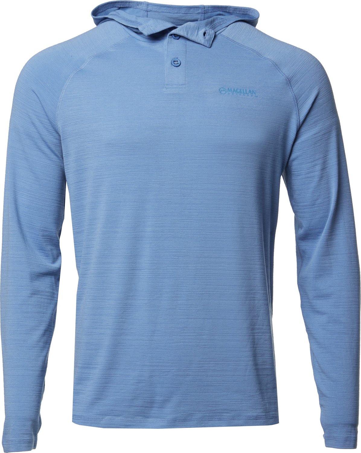 Head out wearing the Magellan Outdoors Men's FishGear Shore and Line Slub Henley Hoodie. This hoodie is made from 70% bamboo rayon and 30% polyester knit for lightweight comfort. The UPF 30 protectant guards against harmful sun rays.