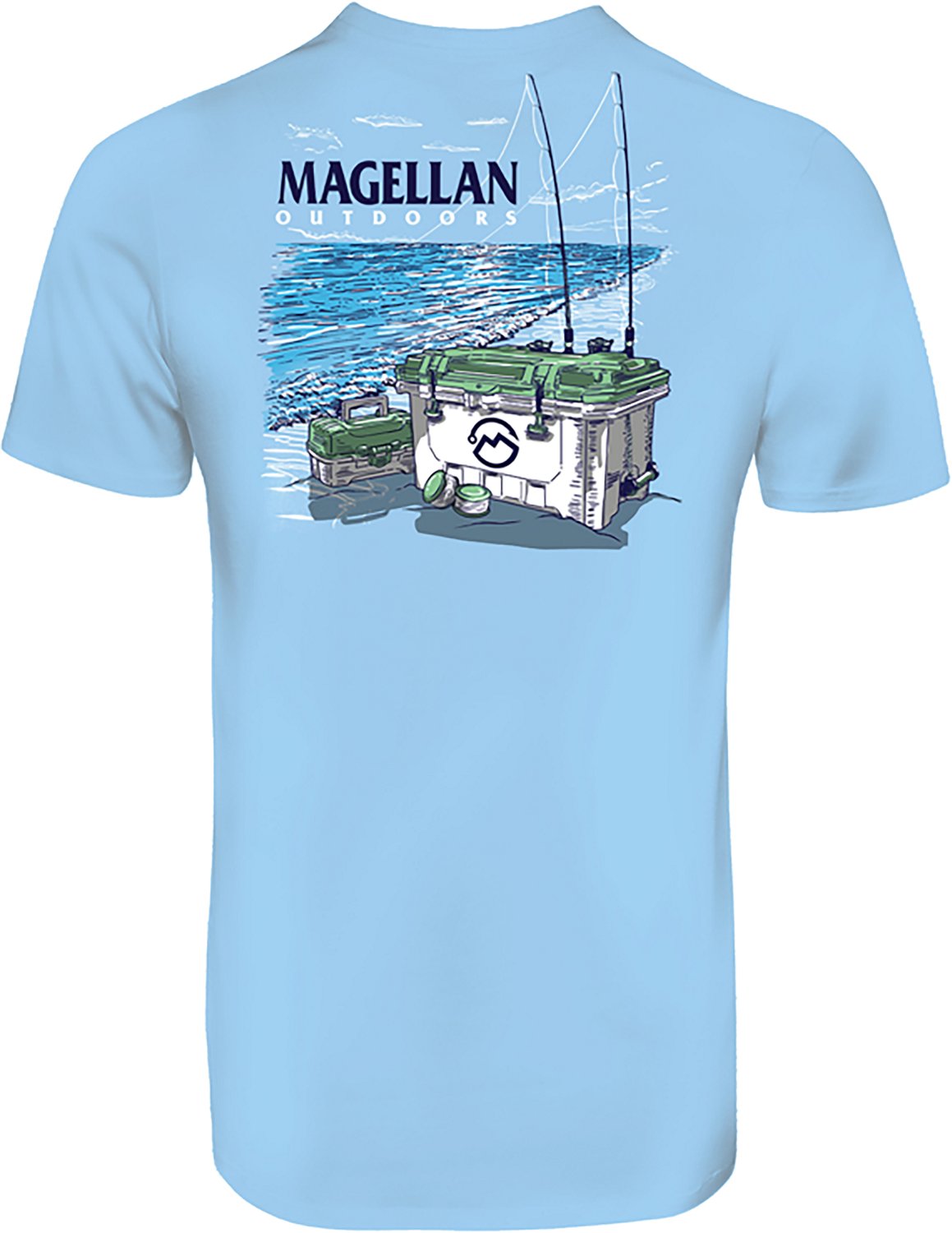 Put your stylish side on display with the Magellan Outdoors Men's Fishing Set T-shirt. This shirt is crafted with cotton material to help keep you comfortable throughout the day, and the screen-printed graphic design delivers an eye-catching appearance.