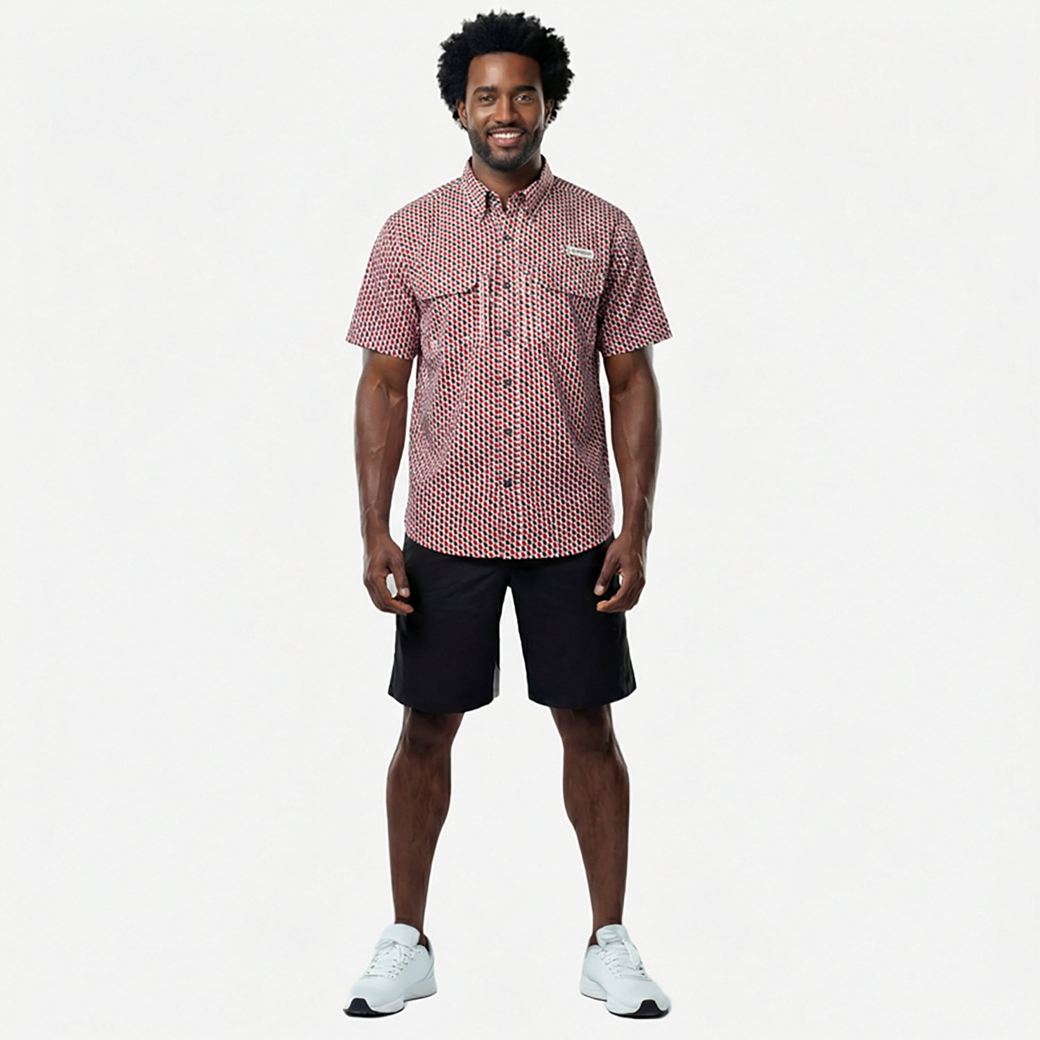 Show everyone where you're from with the Magellan Outdoors Men's Georgia Local State Print Shirt. This button-down shirt is made of polyester twill with moisture-wicking technology for a dry, comfortable feel. The graphic design highlights your southern roots. UPF 30 sun protection. Short sleeves.