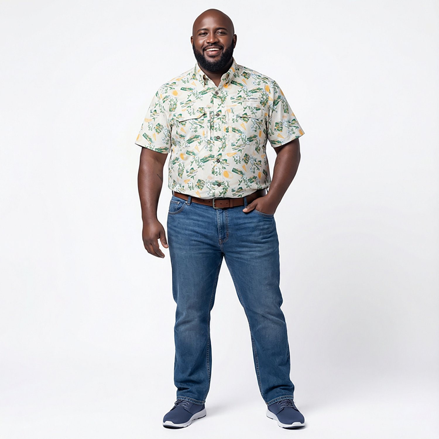 Show everyone where you're from with the Magellan Outdoors Men's Georgia Local State Print Shirt. This button-down shirt is made of polyester twill with moisture-wicking technology for a dry, comfortable feel. The graphic design highlights your southern roots. UPF 30 sun protection. Short sleeves.