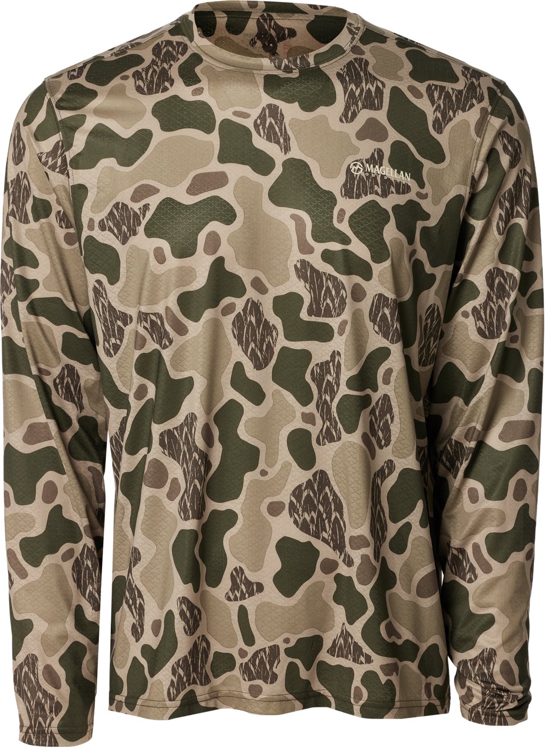 Head to the field in the Magellan Outdoors Hunt Gear Men's Eagle Pass Tech Mesh Long Sleeve T-shirt. This T-shirt is made of polyester and spandex mesh fabric for comfortable wear. The moisture wicking technology helps keep you cool and dry, while the camo print offers concealability.