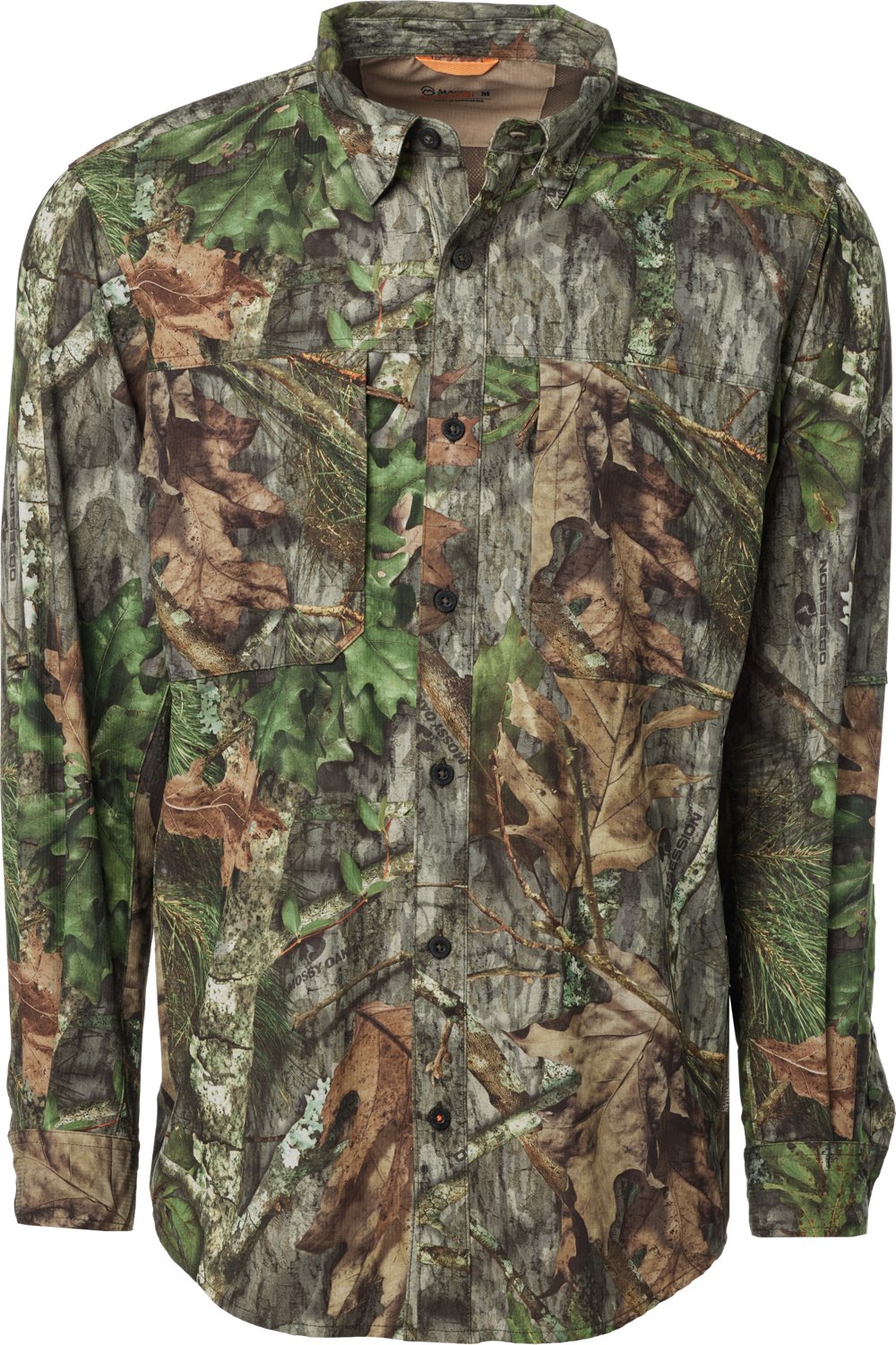 Kick back and wait for game sporting the Magellan Outdoors Men's Lightweight Ripstop Button Down Long Sleeve Shirt. The moisture-wicking technology keeps you cool and dry, and the spandex and polyester construction feels soft and comfortable on your skin. A camo pattern highlights your outdoorsy side.