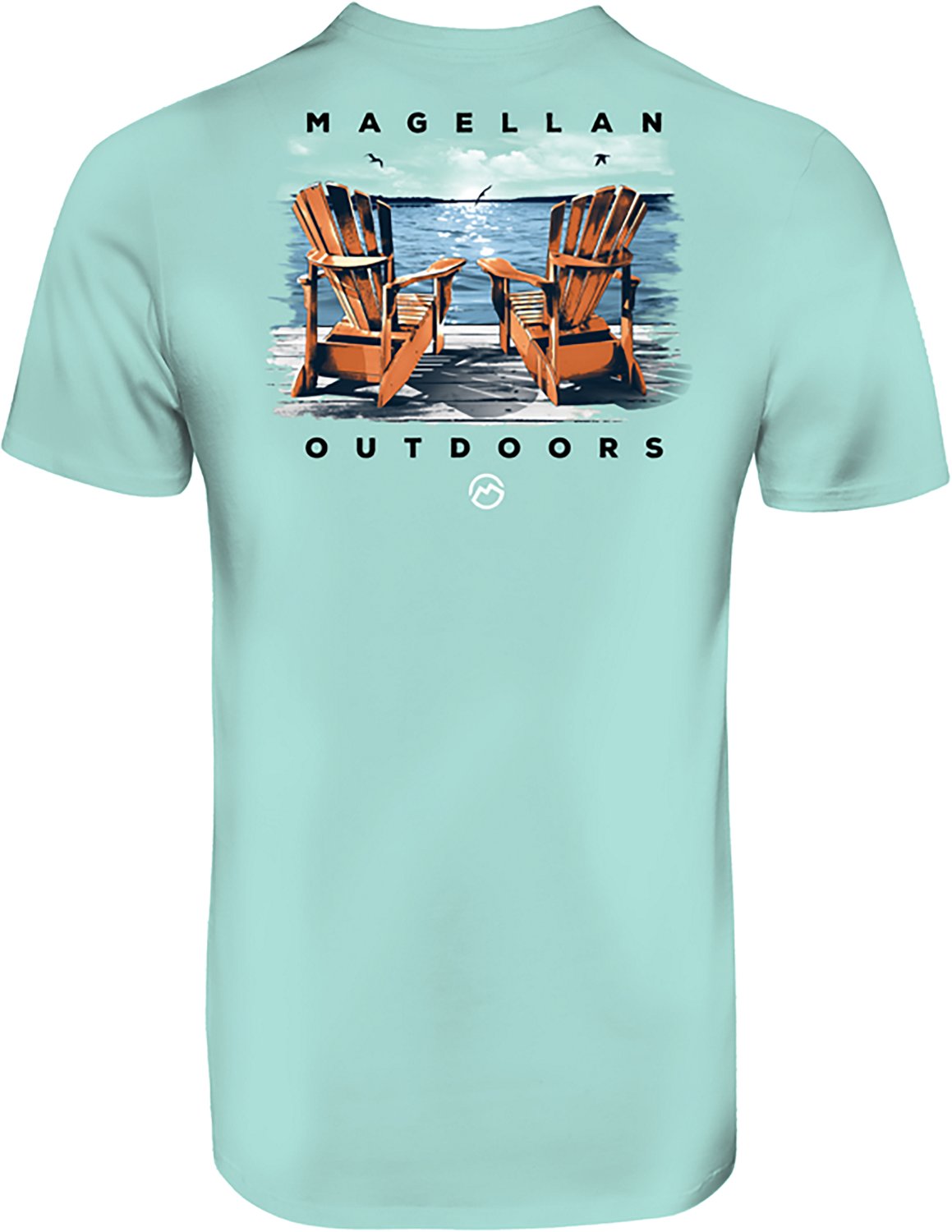 Show off your sense of style when you wear the Magellan Outdoors Men's In Between T-shirt. The 100% cotton construction provides a soft, comfortable feel all day long, and the screen-printed graphics on the left chest and back deliver an eye-catching appearance.