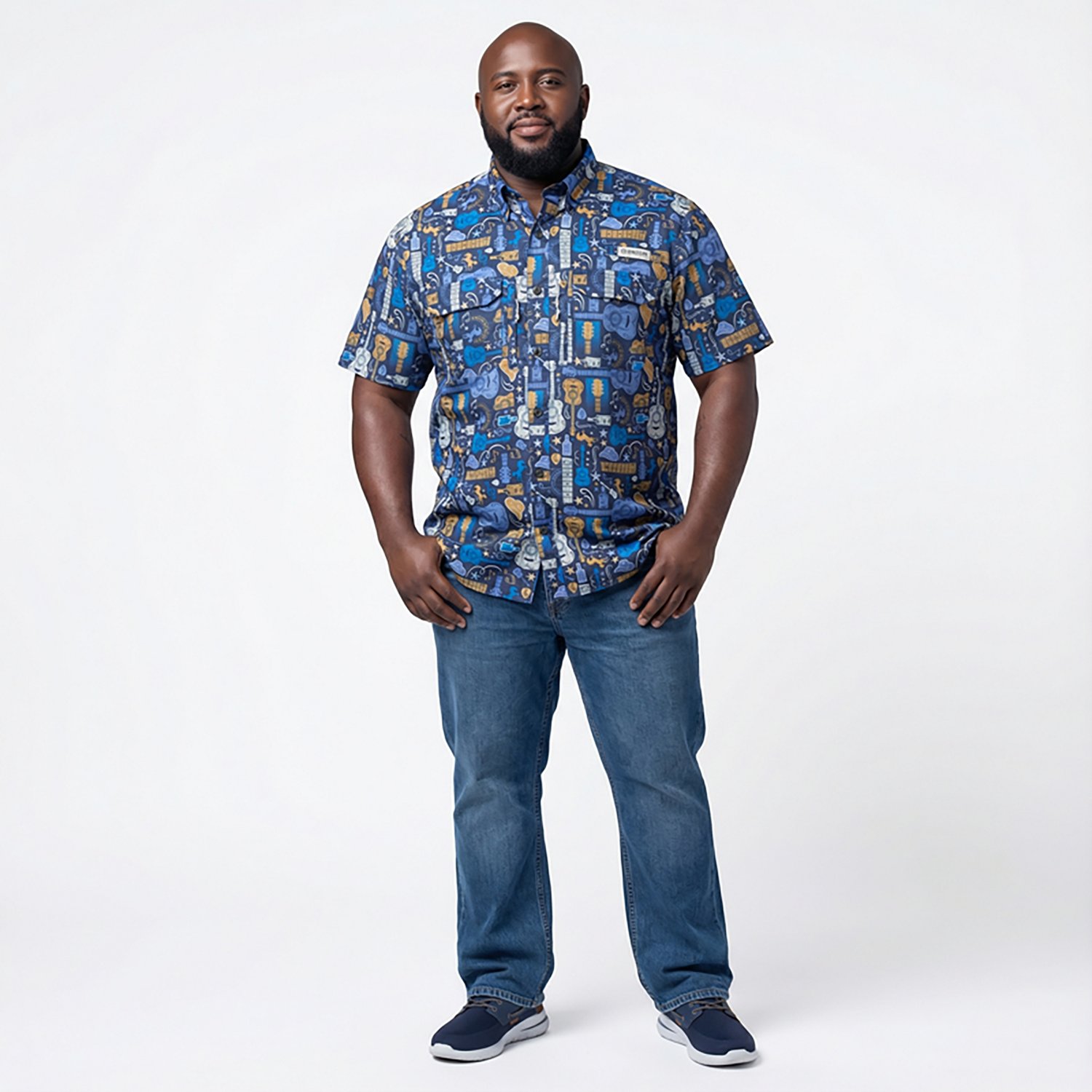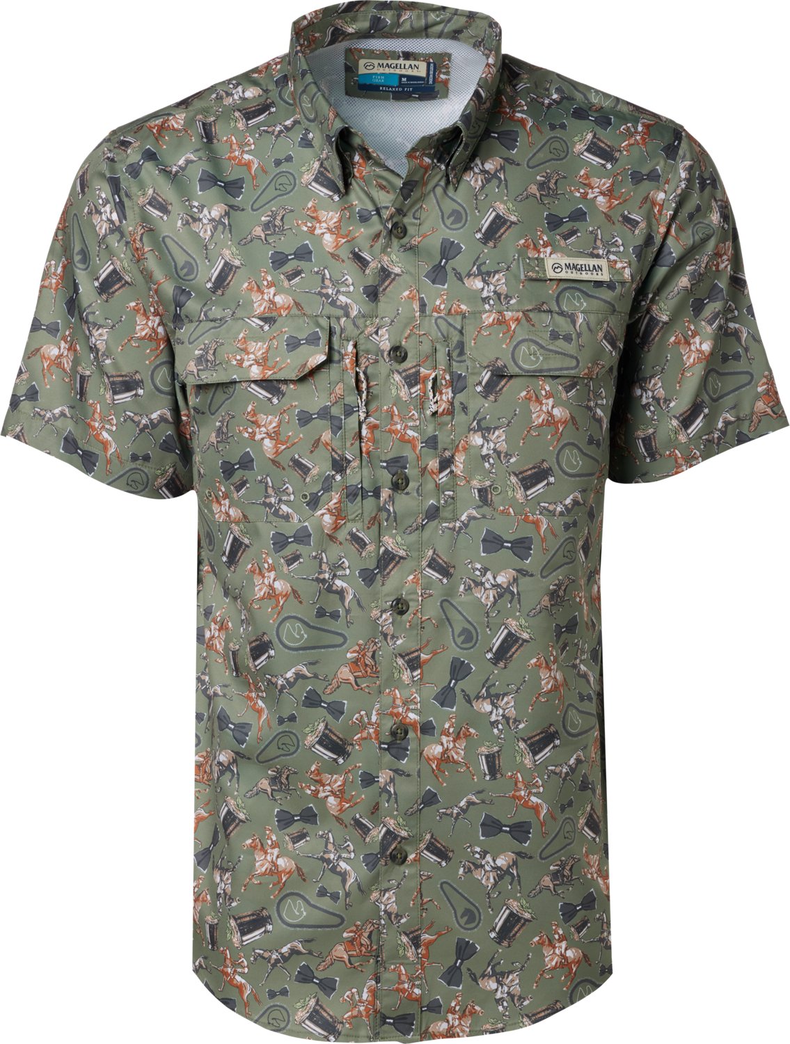 Show everyone where you're from with the Magellan Outdoors Men's Kentucky Local State Print Shirt. This button-down shirt is made of polyester twill with moisture-wicking technology for a dry, comfortable feel. The graphic design highlights your southern roots. UPF 30 sun protection. Short sleeves.