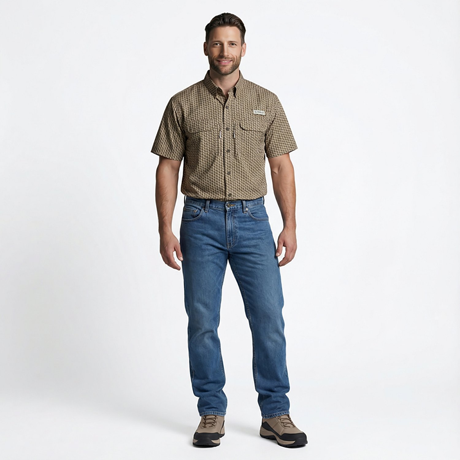 The Magellan Outdoors Men's LA Local State Print Shirt is well-equipped for a day on the water. The fabric is integrated with moisture-wicking technology and UPF protection to help maximize comfort outdoors. The button-down closure makes cleaning up after your trip easy, and the state-inspired print showcases your local roots.
