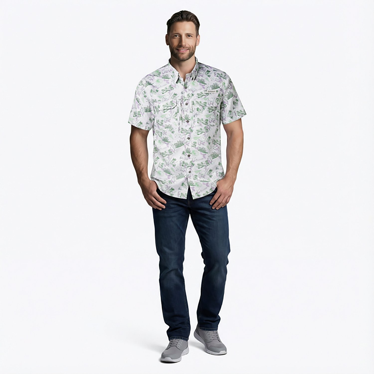 The Magellan Outdoors Men's LA Local State Print Shirt is well-equipped for a day on the water. The fabric is integrated with moisture-wicking technology and UPF protection to help maximize comfort outdoors. The button-down closure makes cleaning up after your trip easy, and the state-inspired print showcases your local roots.