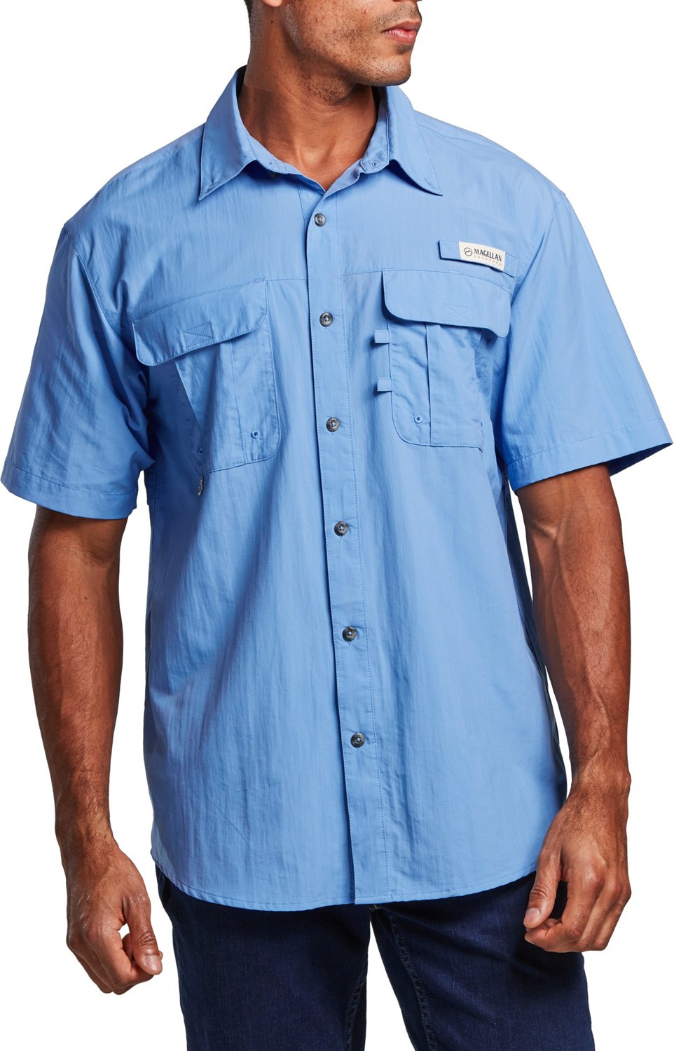 Just slip on the Magellan Outdoors Men's Laguna Madre Solid Short Sleeve Fishing Shirt, pack up your reel, rod and tackle box and you'll be ready to go. Made of lightweight, yet sturdy nylon, this short-sleeve shirt offers UPF 30 protection from the sun's harmful rays. Plus, moisture-wicking fabric technology helps keep you cool and dry on especially hot days out on the water.