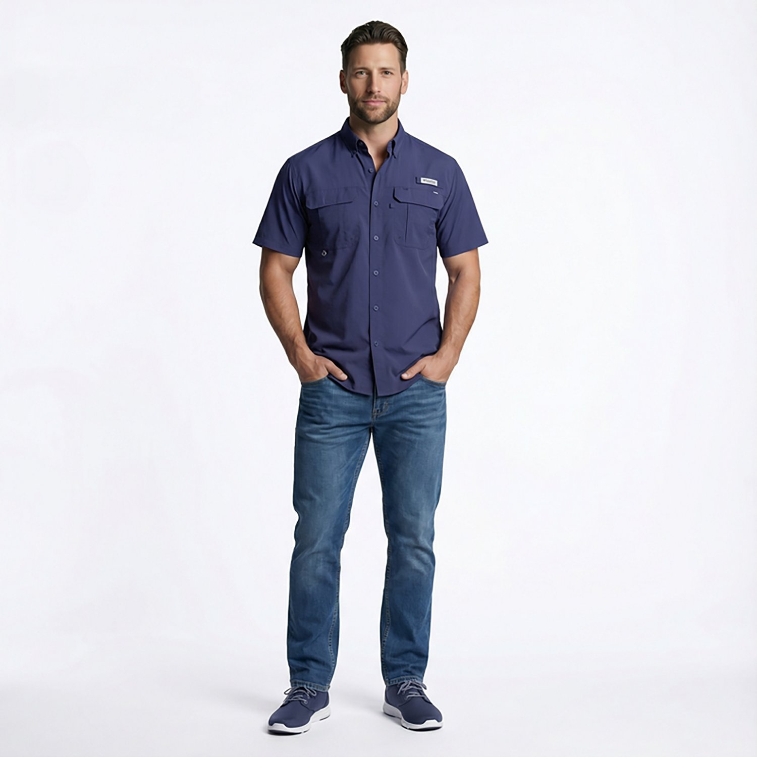 Just slip on the Magellan Outdoors Men's Laguna Madre Solid Short Sleeve Fishing Shirt, pack up your reel, rod and tackle box and you'll be ready to go. Made of lightweight, yet sturdy nylon, this short-sleeve shirt offers UPF 30 protection from the sun's harmful rays. Plus, moisture-wicking fabric technology helps keep you cool and dry on especially hot days out on the water.