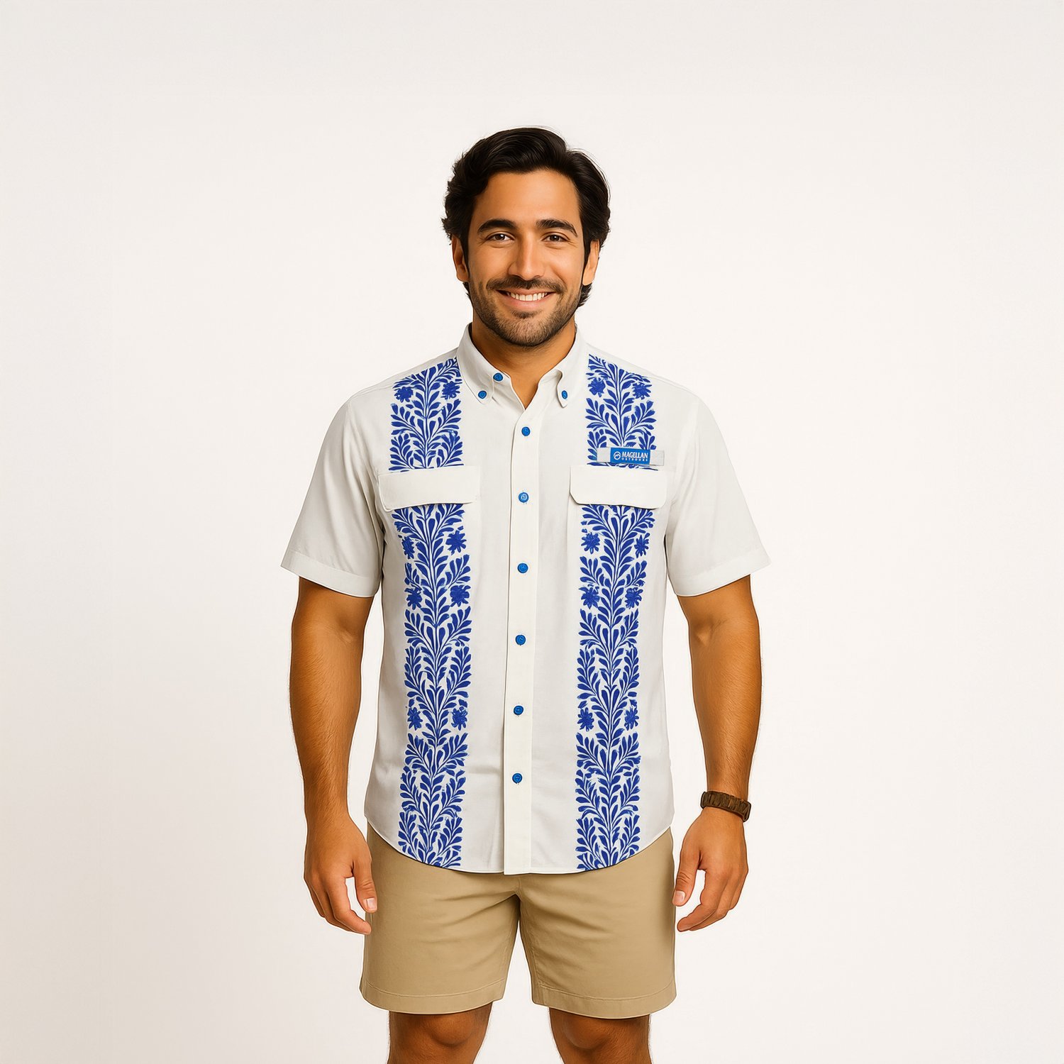 Magellan Outdoors Men's Laguna Madre Talavera Azul Short Sleeve Button Down