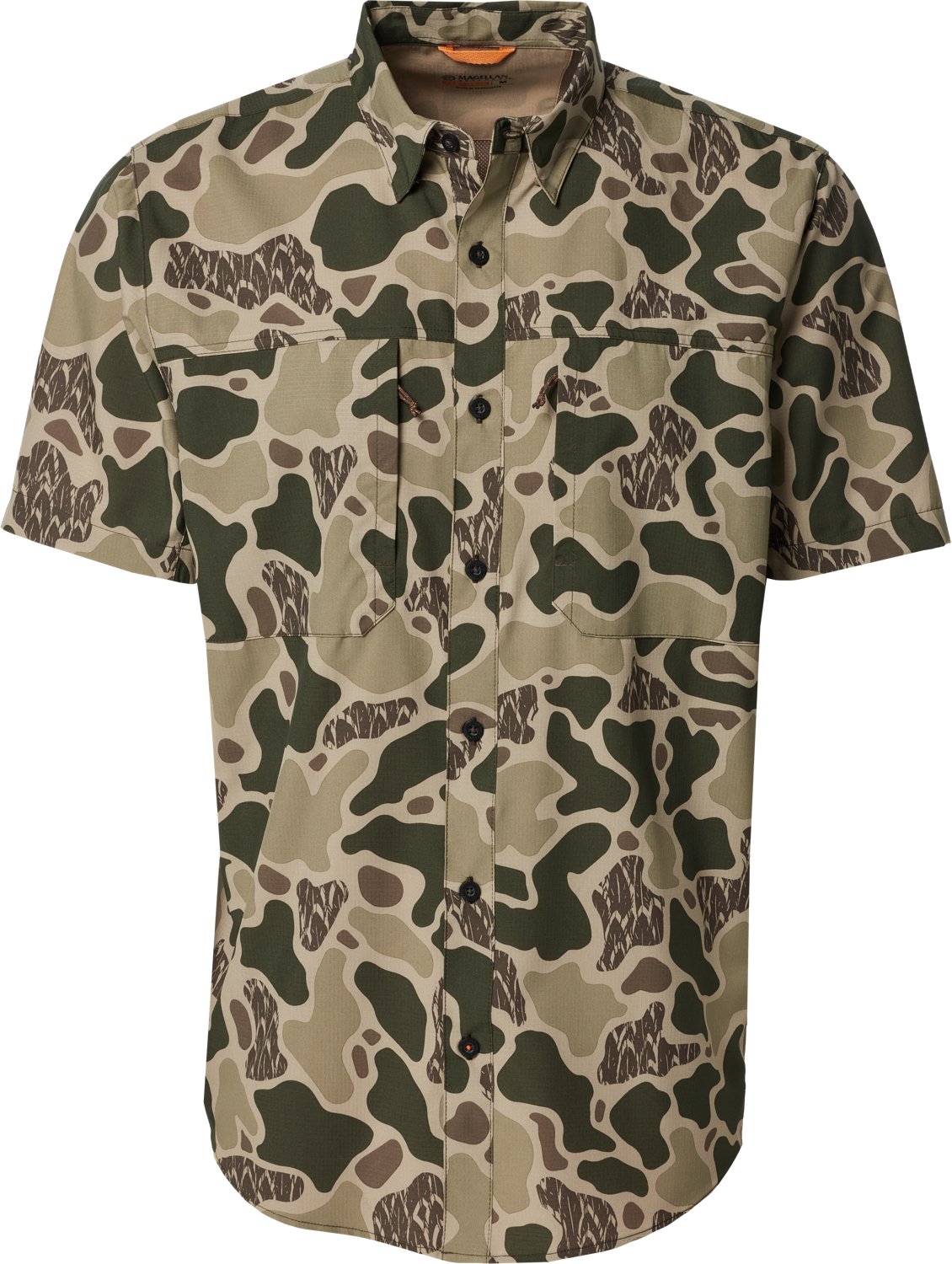 Get ready for the hunt with the Magellan Outdoors Men's Lightweight Ripstop Button Down Short Sleeve Shirt, a new addition the Fall 2022 line featuring 2 chest pockets. The polyester and spandex material provides durability, stretch and a breathable, comfortable feel, while the moisture wicking technology helps keep you cool and dry. The camo print ensures you remain hidden and the gusseted back with stretch mesh makes it easy to move on the go.