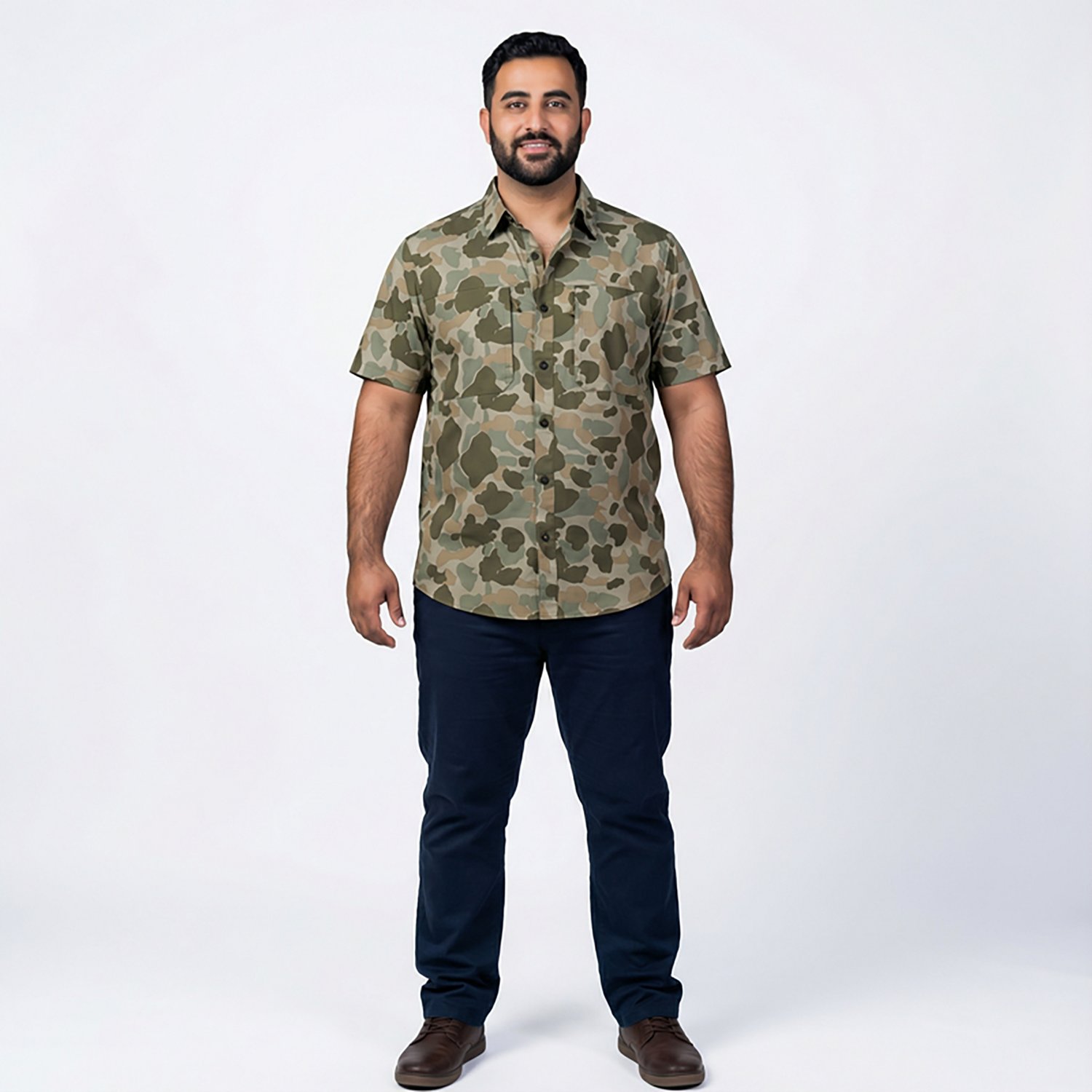 Get ready for the hunt with the Magellan Outdoors Men's Lightweight Ripstop Button Down Short Sleeve Shirt, a new addition the Fall 2022 line featuring 2 chest pockets. The polyester and spandex material provides durability, stretch and a breathable, comfortable feel, while the moisture wicking technology helps keep you cool and dry. The camo print ensures you remain hidden and the gusseted back with stretch mesh makes it easy to move on the go.