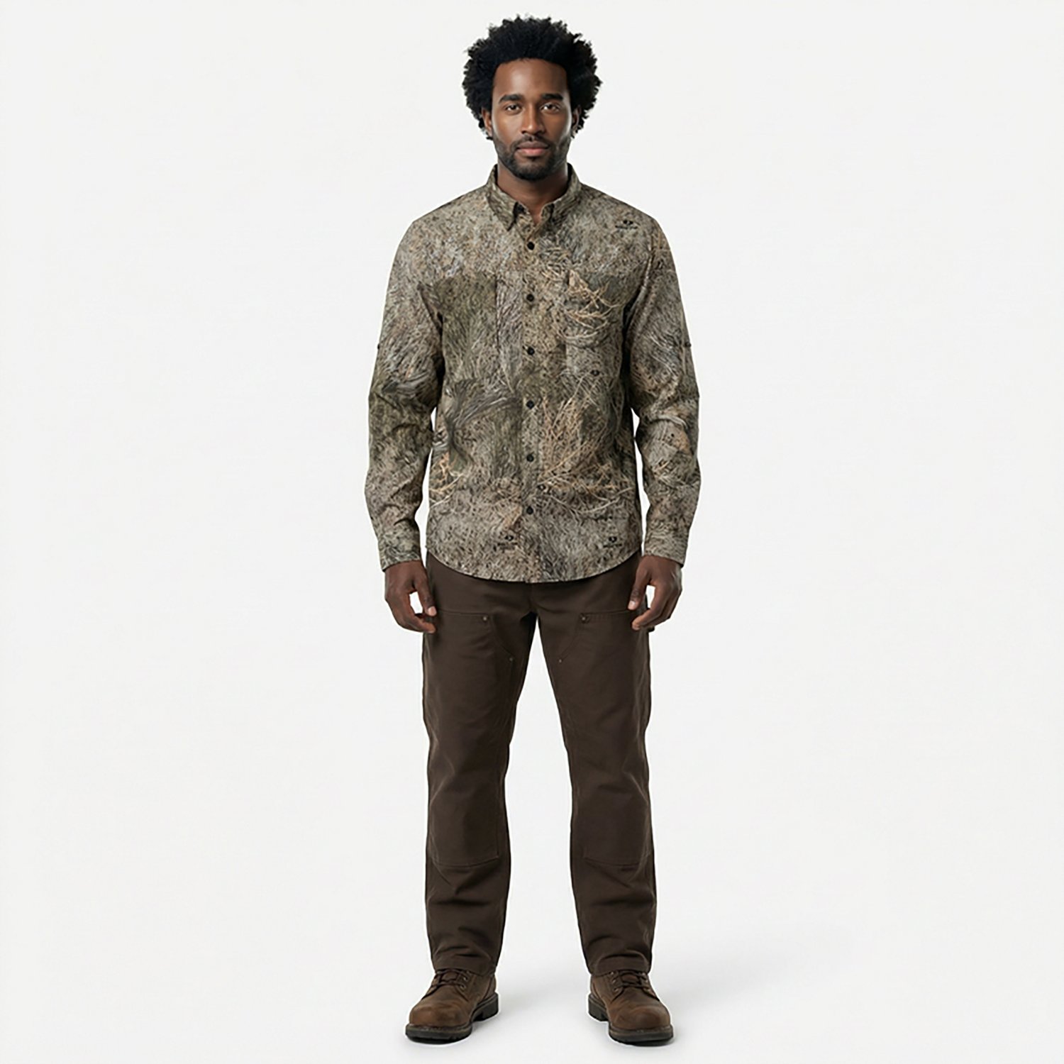 Get ready for the hunt with the Magellan Outdoors Men's Lightweight Ripstop Button Down Short Sleeve Shirt, a new addition the Fall 2022 line featuring 2 chest pockets. The polyester and spandex material provides durability, stretch and a breathable, comfortable feel, while the moisture wicking technology helps keep you cool and dry. The camo print ensures you remain hidden and the gusseted back with stretch mesh makes it easy to move on the go.