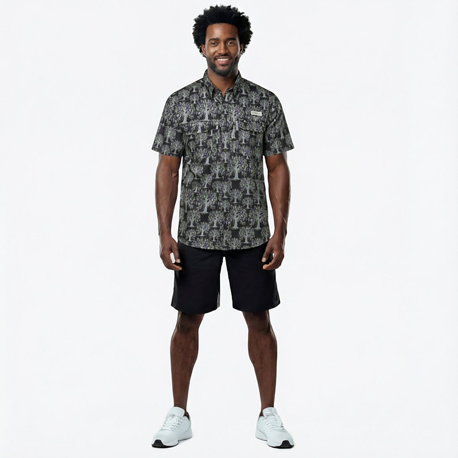 Celebrate the season in the Magellan Outdoors Men's Mardi Gras Print Short Sleeve Shirt. This lightweight button-down top is made from woven polyester twill with moisture-wicking fibers and UPF 30 protection. A Mardi Gras-themed print elevates your look.