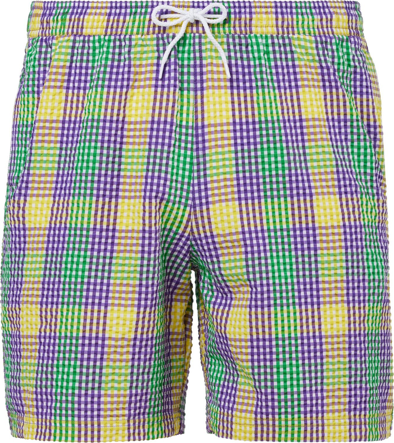 Make each day your own with the Magellan Outdoors Men's Mardi Gras Seersucker Gingham Boat Shorts 7 in. The polyester and nylon material provides a comfortable feel, while the moisture-wicking technology keeps you cool and dry. The UPF 30 protection shields against the sun's harmful rays, and the elastic waistband offers a custom fit.