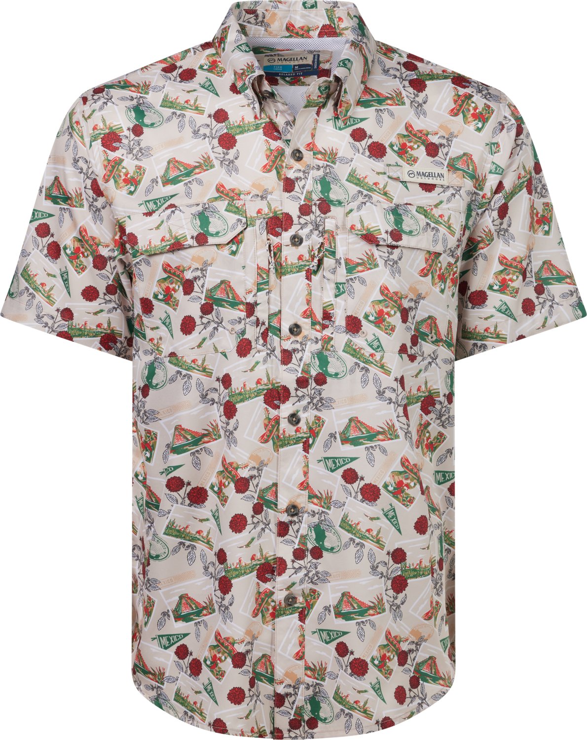 Get ready for a day by the water in the Magellan Outdoors Men's Mexico Print Fishing Shirt. The moisture-wicking technology gets rid of sweat to help you feel dry, while the polyester fabric feels soft and durable. The polyester mesh lining promotes breathability to help you feel cool in the sun.