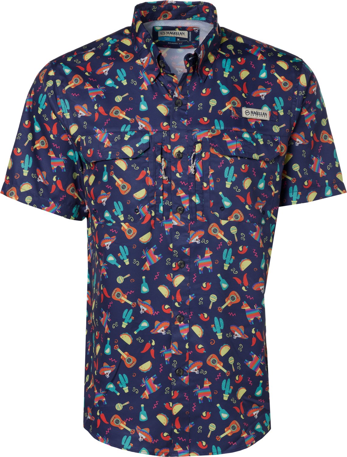 Get ready for a day by the water in the Magellan Outdoors Men's Mexico Print Fishing Shirt. The moisture-wicking technology gets rid of sweat to help you feel dry, while the polyester fabric feels soft and durable. The polyester mesh lining promotes breathability to help you feel cool in the sun.