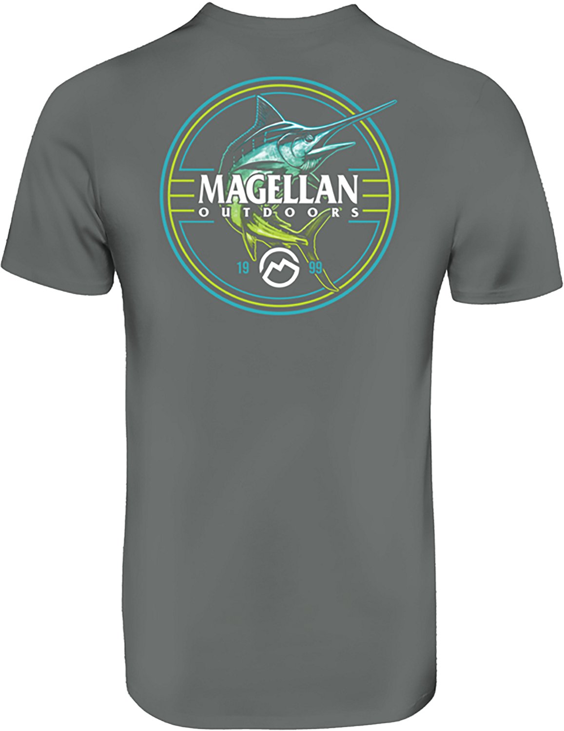 Show off your sense of style when you wear the Magellan Outdoors Men's Neon Glow T-shirt. The 100% cotton construction provides a soft, comfortable feel all day long, and the screen-printed graphics on the left chest and back deliver an eye-catching appearance.
