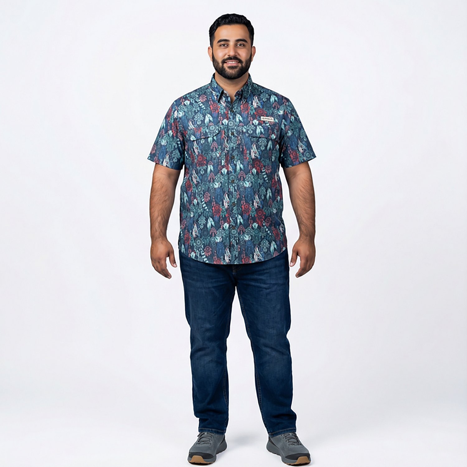 Show everyone where you're from with the Magellan Outdoors Men's Oklahoma Local State Print Shirt. This button-down shirt is made of polyester twill with moisture-wicking technology for a dry, comfortable feel. The graphic design highlights your southern roots. UPF 30 sun protection. Short sleeves.