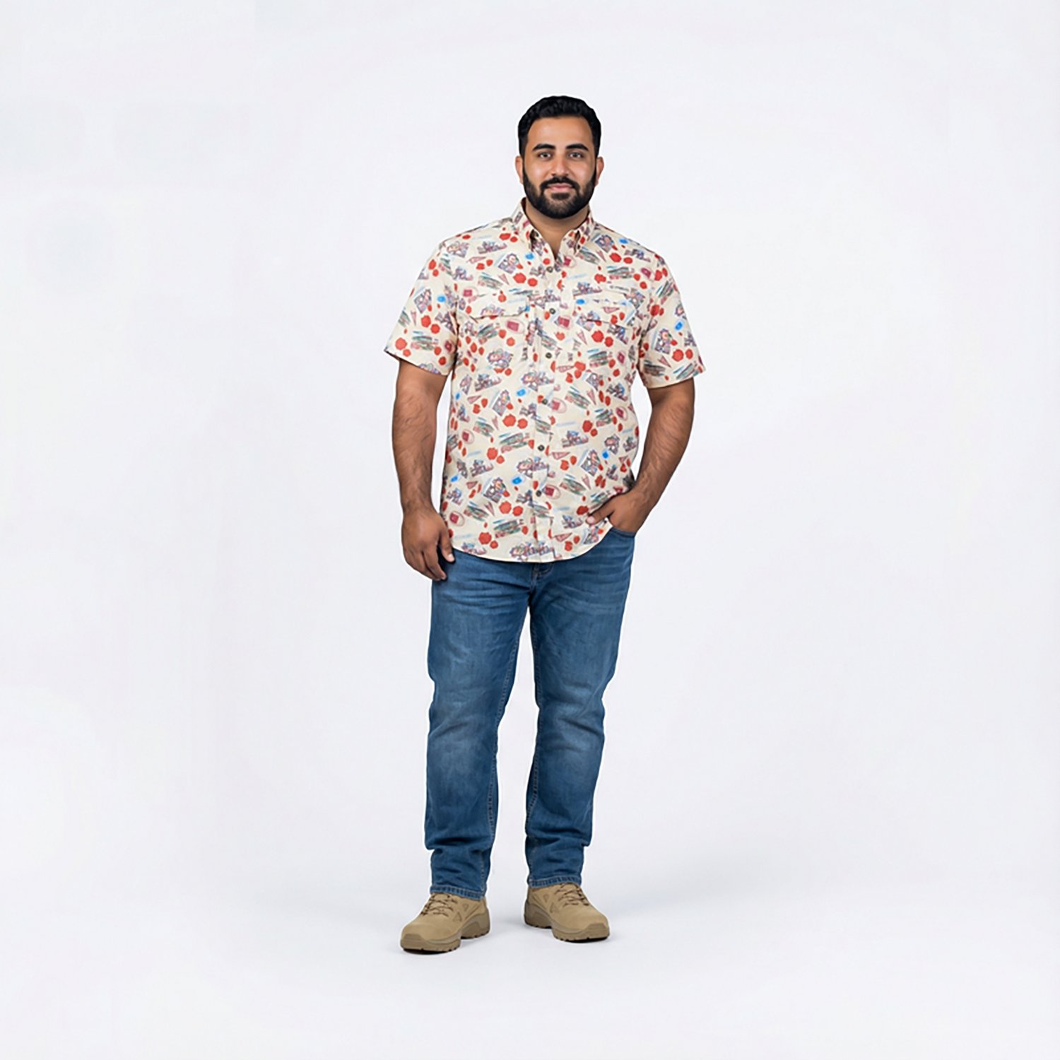 Show everyone where you're from with the Magellan Outdoors Men's Oklahoma Local State Print Shirt. This button-down shirt is made of polyester twill with moisture-wicking technology for a dry, comfortable feel. The graphic design highlights your southern roots. UPF 30 sun protection. Short sleeves.
