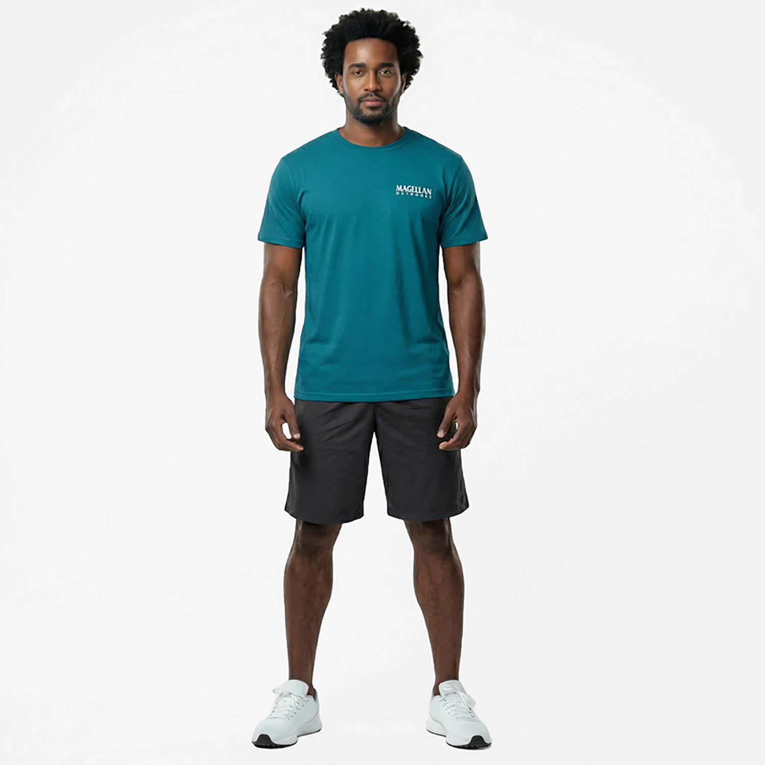 Put your stylish side on display with the Magellan Outdoors Men's Overnight Stay T-shirt. This shirt is crafted with cotton material to help keep you comfortable throughout the day, and the screen-printed graphic design delivers an eye-catching appearance.