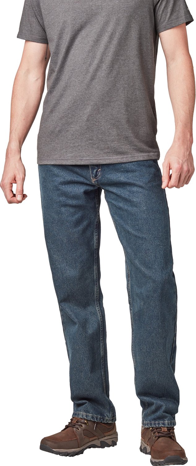 Pull on the Magellan Outdoors Men's Relaxed Fit Jeans for a classic look. These jeans have a 5-pocket design with a floating watch pocket on the front and feature 100% cotton construction for a soft feel and durability.