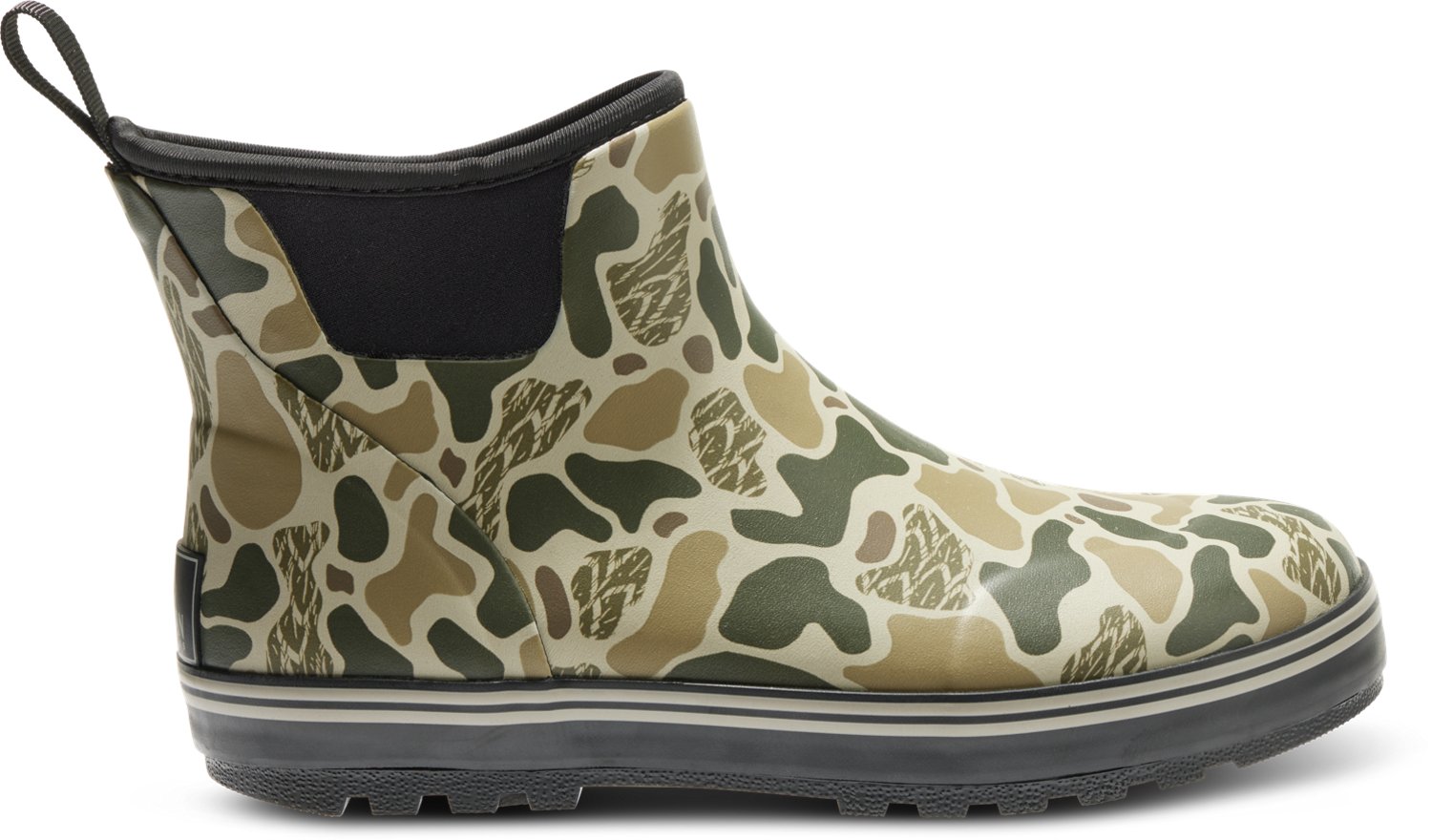 Protect your feet with the Magellan Outdoors Men's Rubber Camp Boots. Their rubber and neoprene upper enhances durability. The waterproof material keeps you dry, and their memory foam insole provides additional comfort. The slip resistant rubber outsole allows for traction and durability.