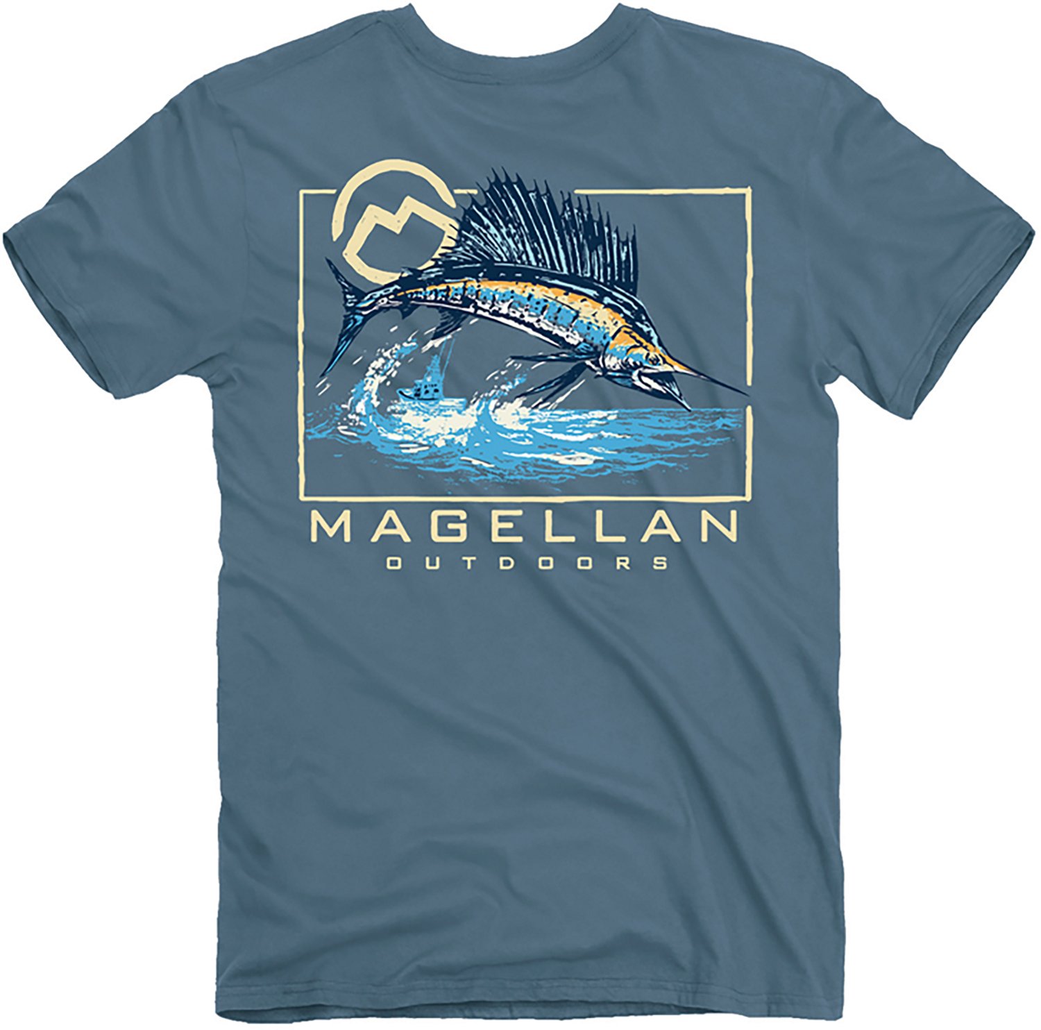 Put your stylish side on display when you wear the Magellan Outdoors Men's Sailfish Blues T-shirt. The 100% cotton construction provides a soft, comfortable feel, while the screen-printed graphic design adds an eye-catching appearance.