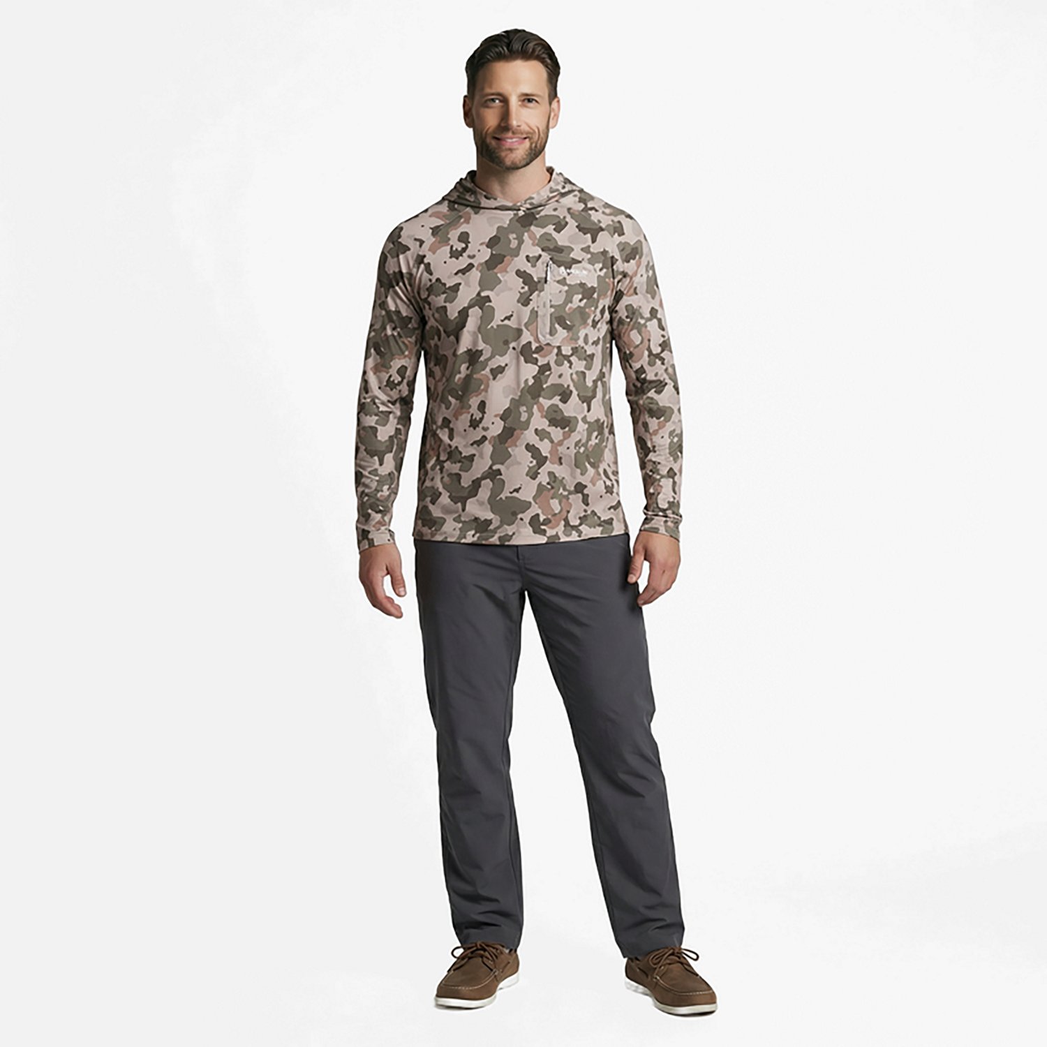 Hook, line and sinker with the Magellan Outdoors Men's Shore and Line Hoodie. The rayon and spandex material provides a comfortable feel, while the moisture wicking technology helps keep you cool and dry. The UPF protection shields against harmful UV rays, and the antimicrobial technology ensures a fresh feel.
