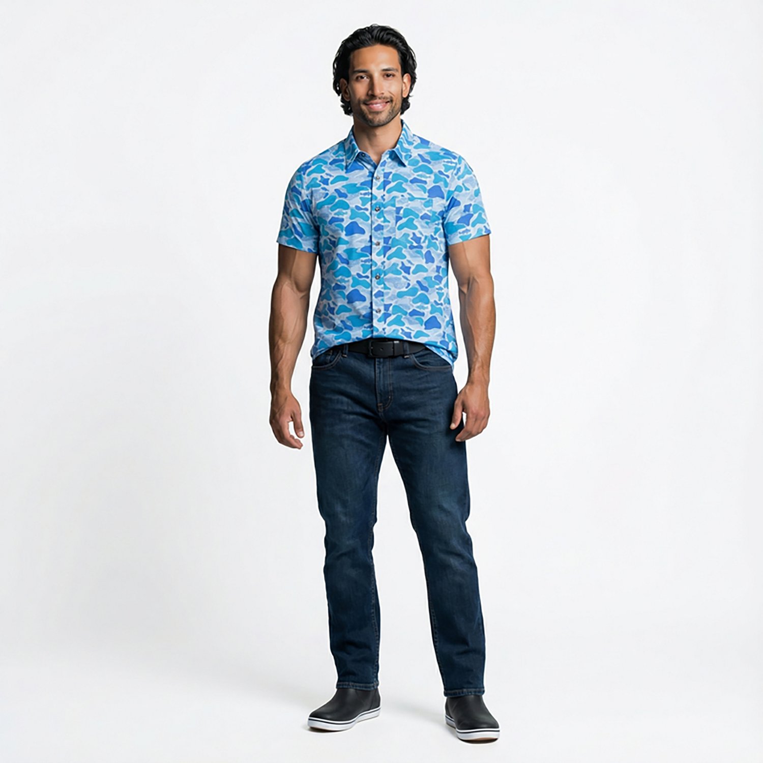Dress to impress out on the boat when you wear the Magellan Outdoors Men's Shore and Line Washed Out Pocket Button-Down Fishing Shirt. The moisture-wicking technology will wick sweat away from your skin, and the polyester/cotton/spandex construction ensures a comfortable fit. The flex technology allows the fabric to flex with your movements for easy mobility.