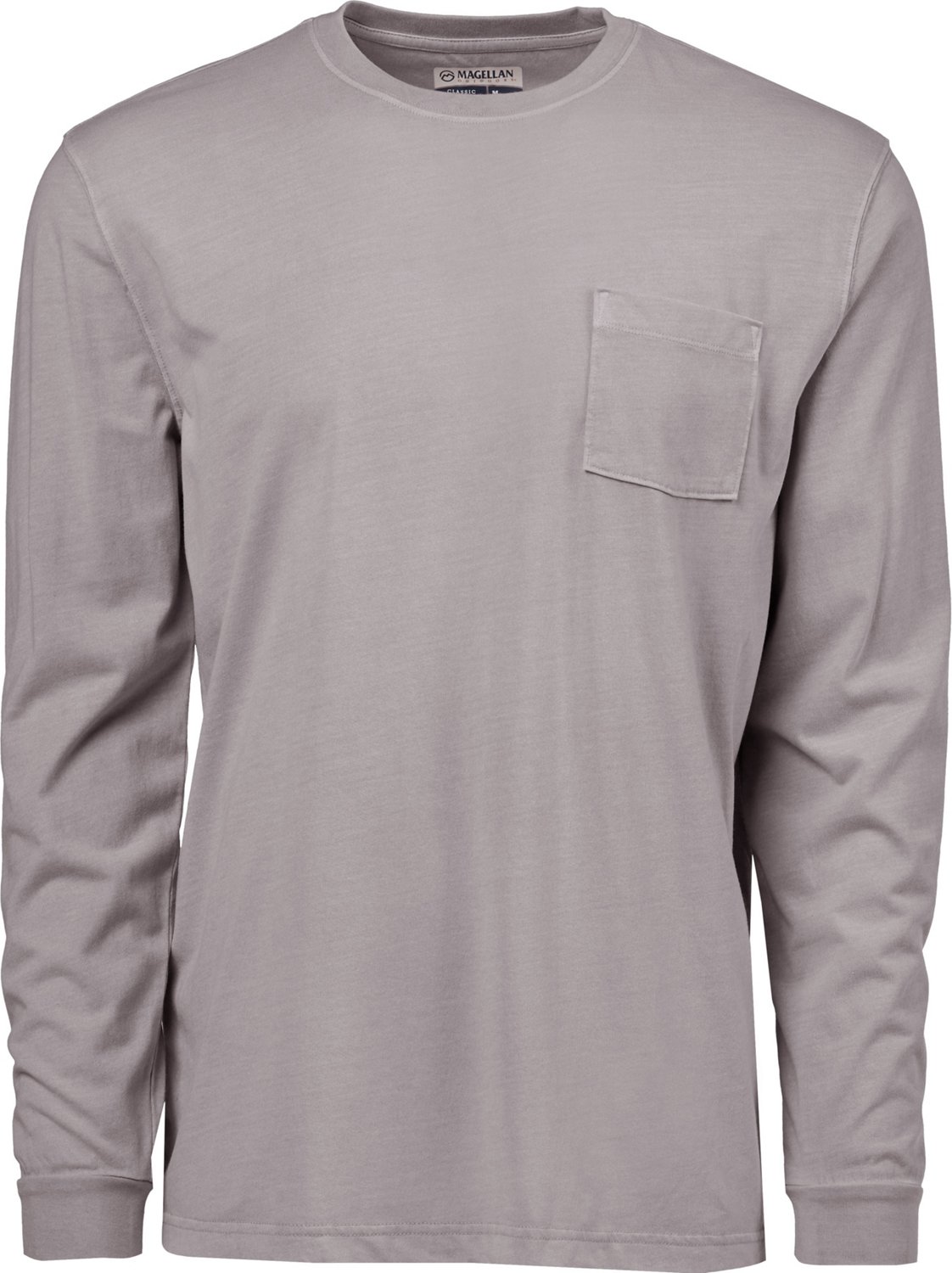 Elevate your everyday style with the Magellan Outdoors Men's Shore & Line Washed Long Sleeve Pocket T-shirt. The soft cotton blend fabric features a washed finish for a lived-in look. The ribbed neck and cuffs deliver a comfortable fit.