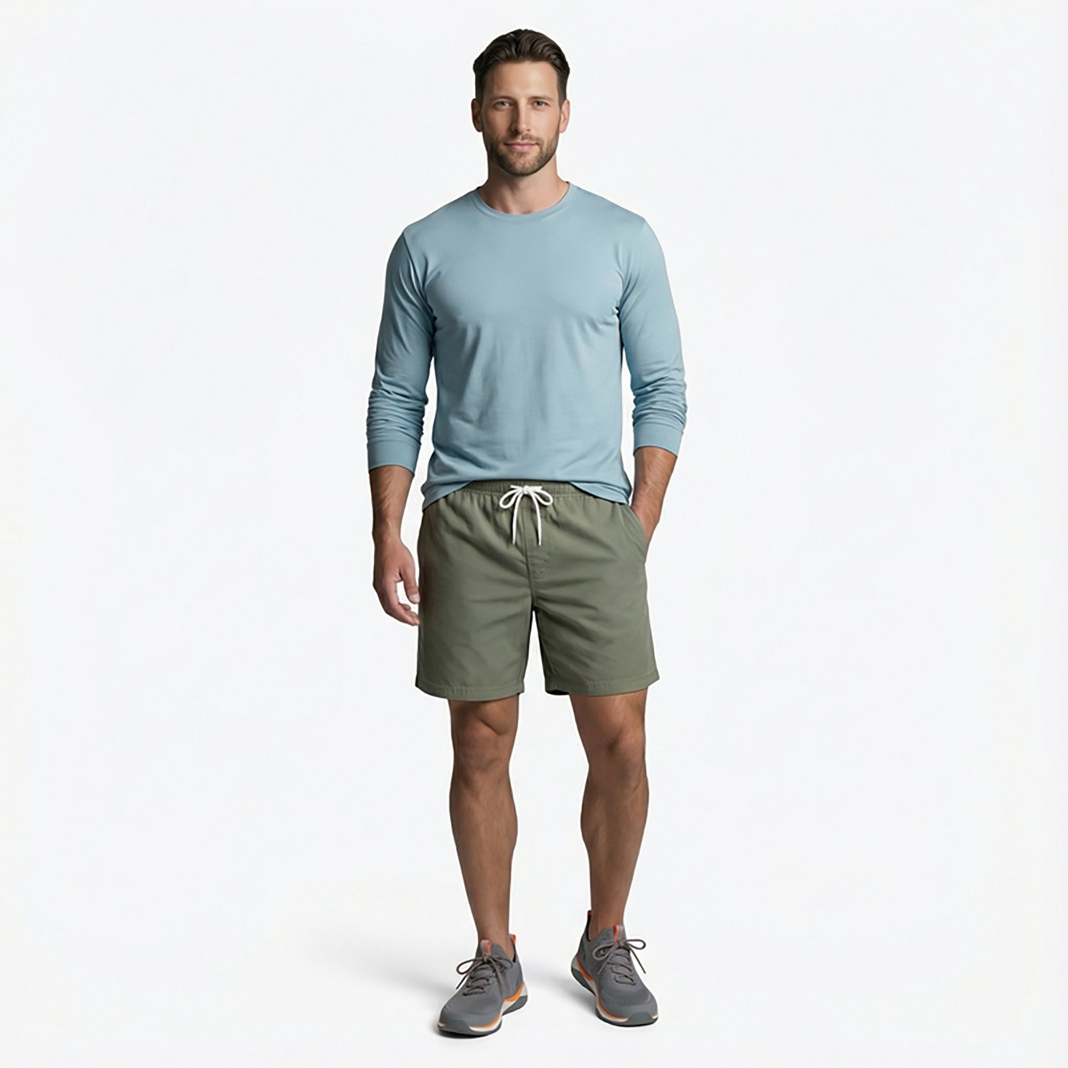 Look your best in the Magellan Outdoors Men's Shore & Line Washed Solid Short 7 in. They are made of 54% polyester and 46% recycled polyester. The UPF 30 provides protection against the sun so you can stay outside longer, and their elastic drawcord allows adjustability. The 7-inch inseam allows for a comfortable length.