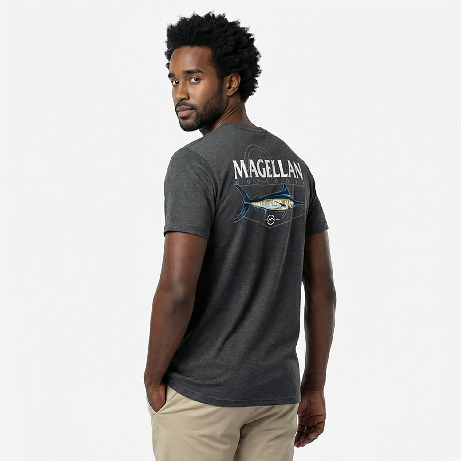 Show off your sense of style when you wear the Magellan Outdoors Men's Straight Point T-shirt. The polyester and cotton construction offers a comfortable feel all day long, while the screen-printed graphics add an eye-catching appearance.