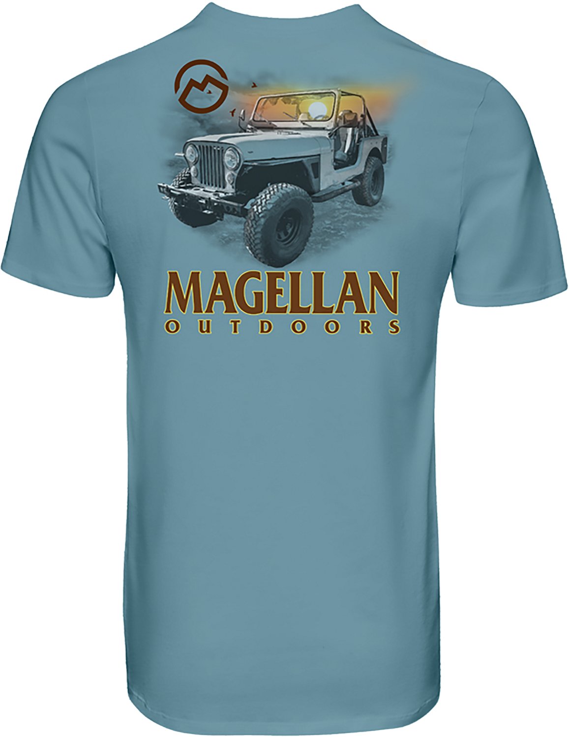 Show off your sense of style when you wear the Magellan Outdoors Men's Sunset Adventure T-shirt. The 100% cotton construction provides a soft, comfortable feel all day long, and the screen-printed graphics on the left chest and back deliver an eye-catching appearance.