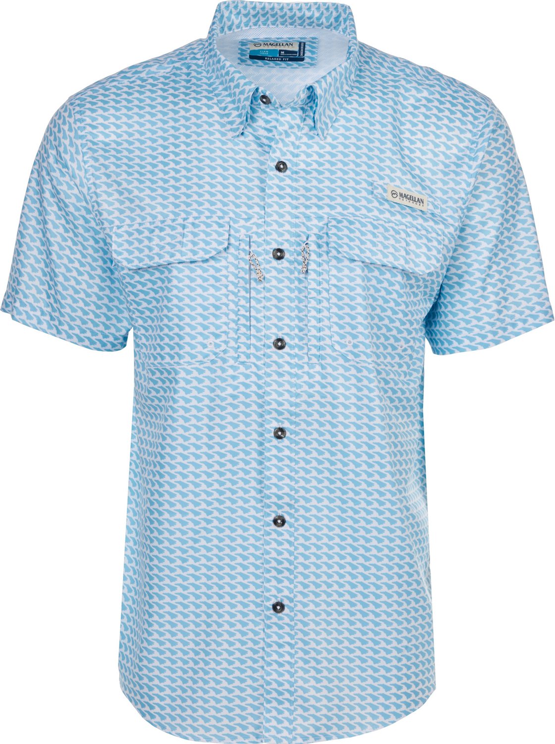 Show everyone where you're from with the Magellan Outdoors Men's North Carolina Local State Print Shirt. This button-down shirt is made of polyester twill with moisture-wicking technology for a dry, comfortable feel. The graphic design highlights your southern roots. UPF 30 sun protection. Short sleeves.