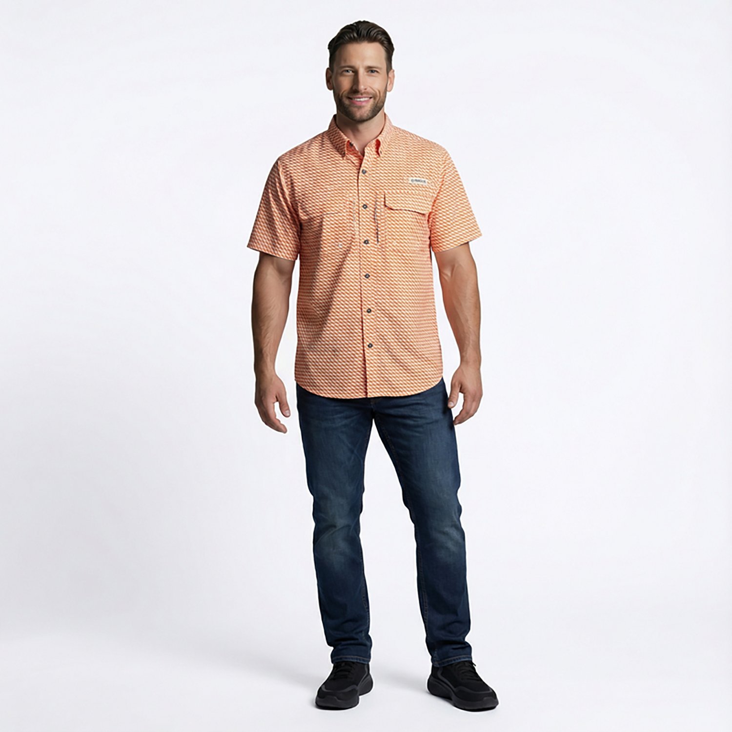 Show everyone where you're from with the Magellan Outdoors Men's Tennessee Local State Print Shirt. This button-down shirt is made of polyester twill with moisture-wicking technology for a dry, comfortable feel. The graphic design highlights your southern roots. UPF 30 sun protection. Short sleeves.
