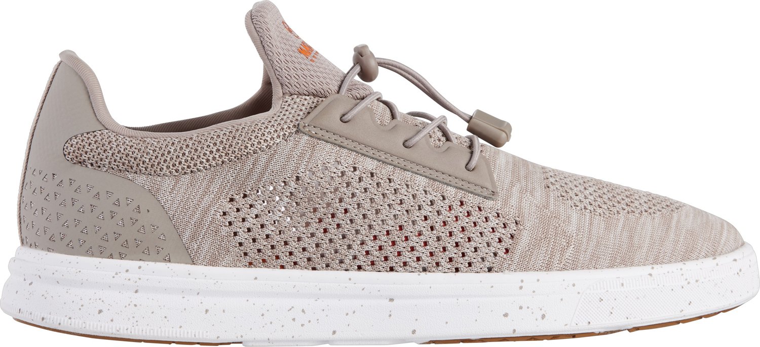 Keep your feet comfortable when you're by the water with the Magellan Outdoors Men's Tidewater Boat Shoes. The EVA drainage outsoles let moisture escape, while the knit textile uppers deliver a comfortable, supportive fit. The perforated EVA footbeds provide cooling comfort, and the bungee laces help keep the shoes secure.
