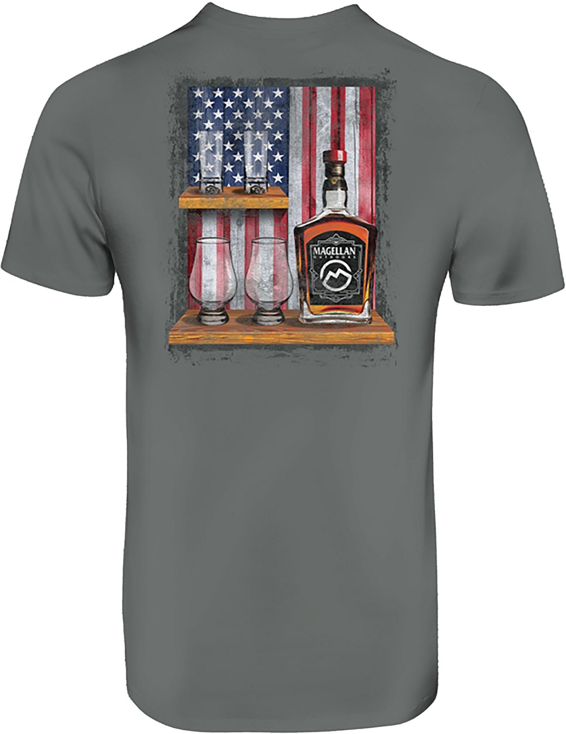 Put your stylish side on display with the Magellan Outdoors Men's Top Shelf T-shirt. This shirt is crafted with cotton material to help keep you comfortable throughout the day, and the screen-printed graphic design delivers an eye-catching appearance.