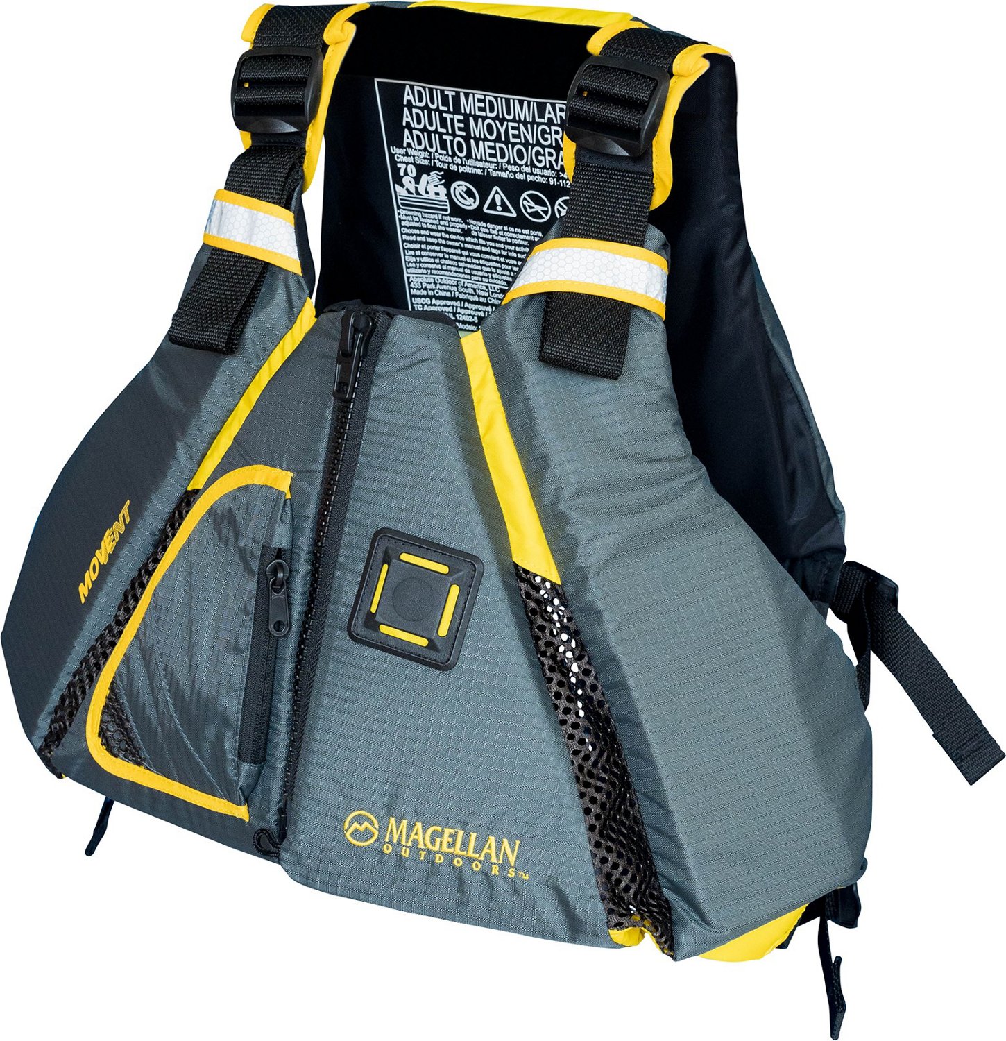 Stay safe on the water with the Magellan Outdoors Move Vent Paddle Vest. This vest is designed for easy mobility while paddling, with large armholes and adjustable side tabs to ensure a snug fit. Mesh ventilation keeps you cool and comfortable, and a zipper entry allows easy on and off. Approved by the U.S. Coast Guard.