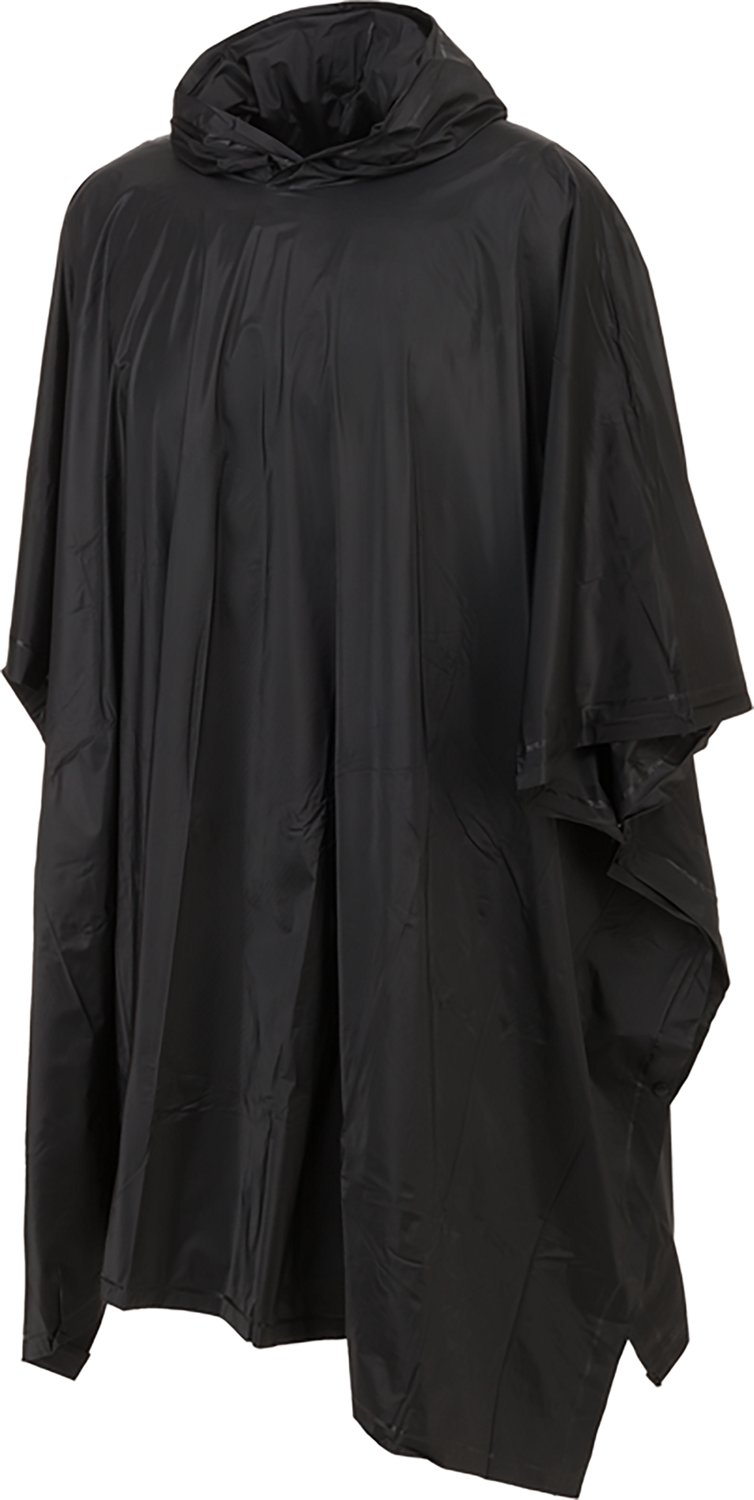 Stay dry during rainy weather wearing this Magellan Outdoors Poncho. Made of durable vinyl, it slicks water away, keeping your body and extremities dry all day. The hood protects your head from precipitation for added comfort.
