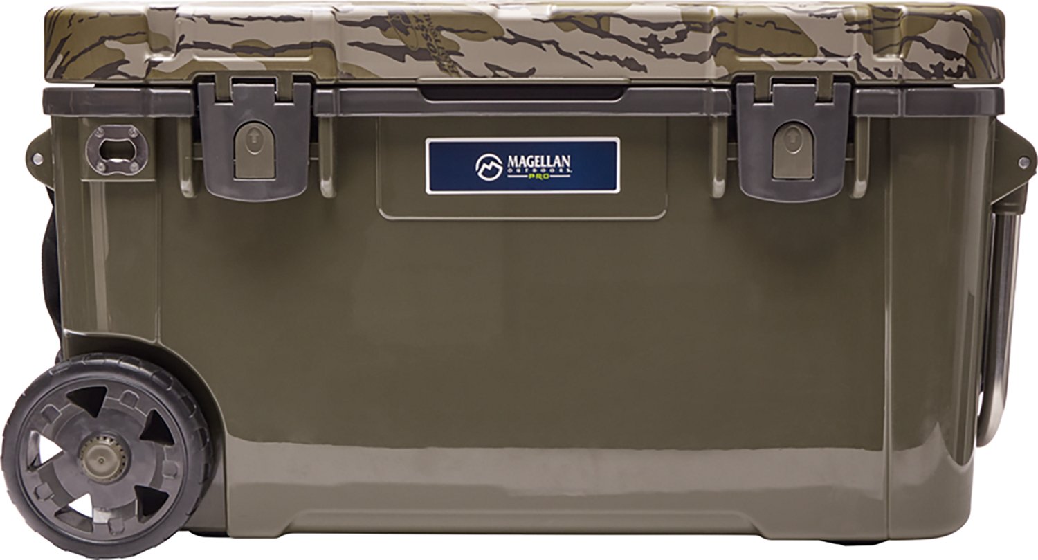 Stock up the Magellan Outdoors Pro Explorer 45 qt Icebox Hard Cooler and make sure you have enough food and drinks for your trip. The cooler features a handle and wheels to allow easy transport, and the V-seal and thick insulation work to keep your food and drinks nice and cool.