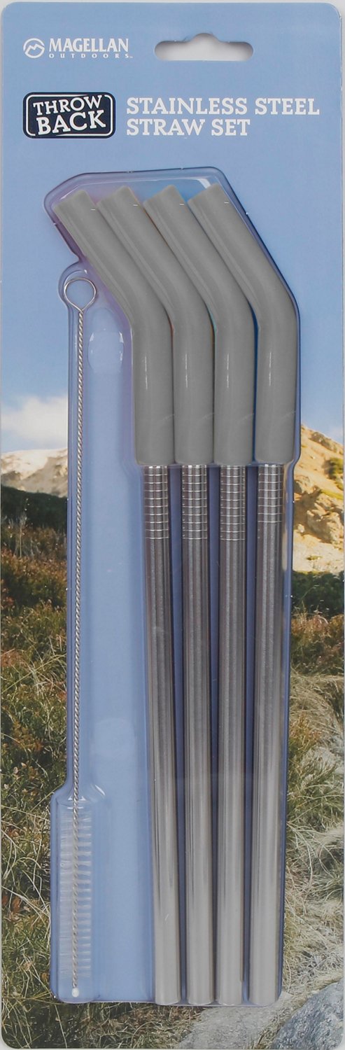 Promote an environmentally conscious lifestyle with the Magellan Outdoors Reusable Straw Set. Constructed with polished stainless steel and silicone tips, these durable straws are designed to fit Magellan Outdoors™ Throwback 12-, 20-, and 30-ounce tumblers, and they are also dishwasher safe for easy cleaning. BPA free.