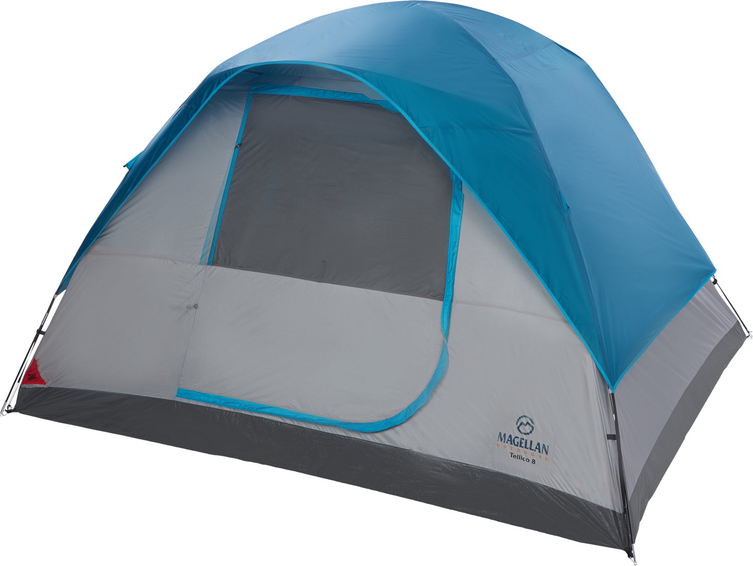 Take on your next adventure with the Magellan Outdoors Tellico 8 Person Dome Tent. It sleeps up to 8 people and features a 7-foot center height providing plenty of headroom. The 1 room makes for easy assembly, and its polyester material withstands the elements for repeated use. The rainfly provides extra protection against wet weather.