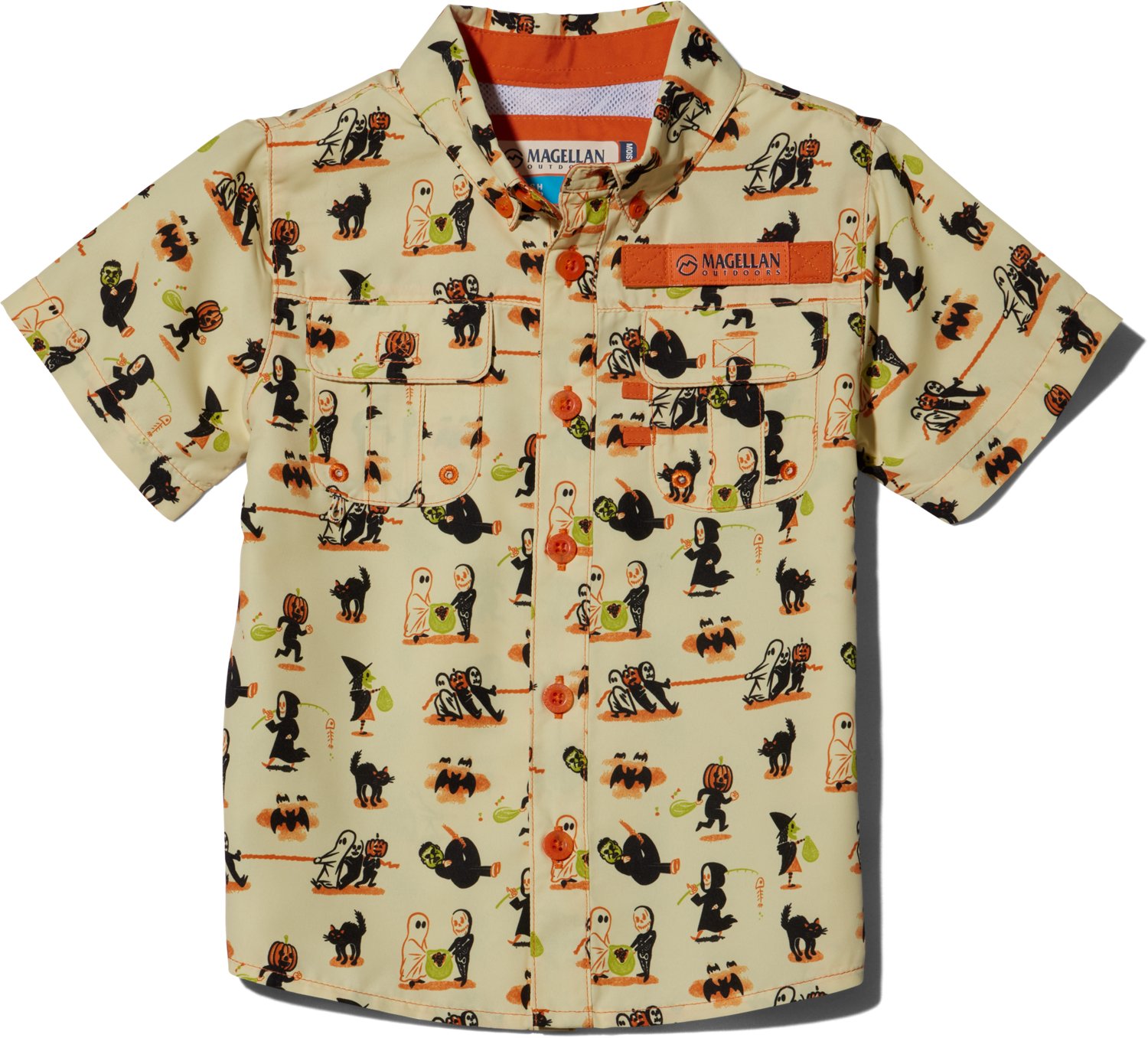 Choose the Magellan Outdoors Toddler Boys' Laguna Madre Halloween Trick Or Treat Fishing Shirt if you want a shirt that helps your little one show off spooky style. This shirt is made of polyester with polyester mesh lining and moisture-wicking technology to help kids stay cool, dry and comfortable.