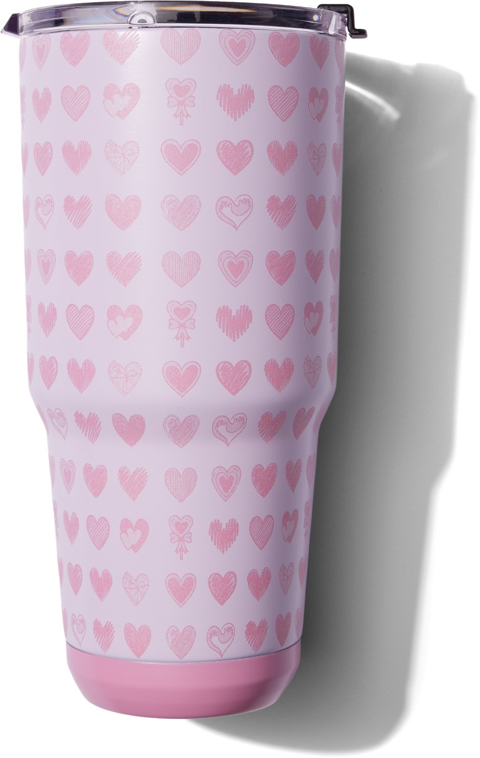 Enjoy hot or cold drinks with the Magellan Outdoors Valentine’s Day 30 oz Tumbler. The 18/8 stainless-steel construction affords durability, while the double-wall vacuum insulation helps keep beverages hot or cold for longer. The condensation-free exterior helps ensure a firm grip, and a locking lid keeps contents contained.