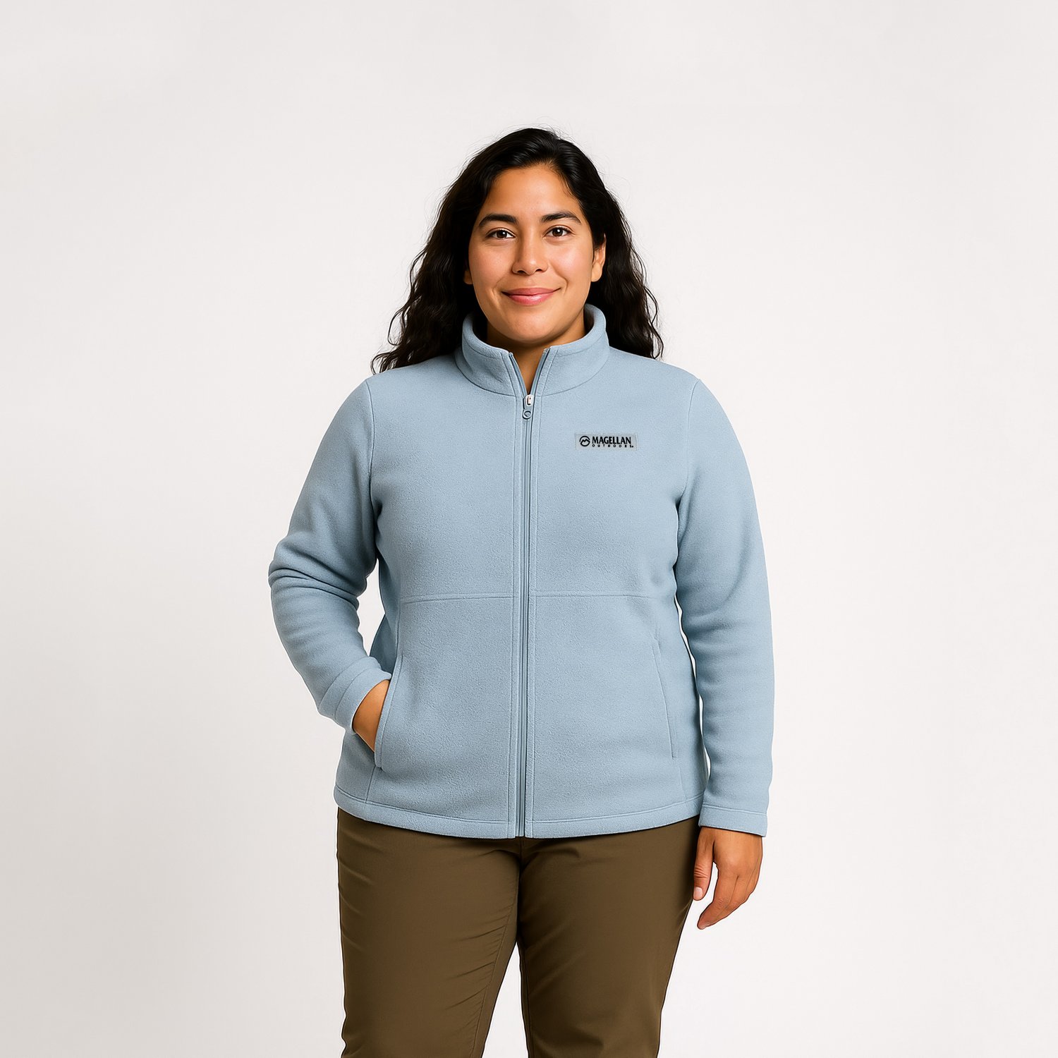 The cold won't stop you from enjoying the outdoors with the Magellan Outdoors Women's Arctic Fleece Jacket. This cozy jacket is made of knit polyester for all-day comfort and is brushed on both sides for softness and warmth. The full-zip closure is easy to adjust and lets you choose the amount of coverage you need to protect yourself from the elements.