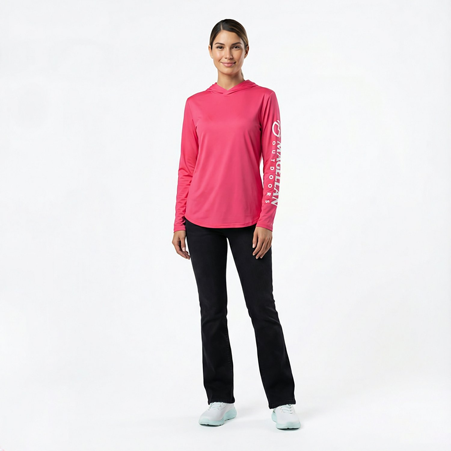 Enjoy hours by the lake sporting the Magellan Outdoors Women's Caddo Lake Fishing Hoodie. The cooling technology promotes breathability, while the moisture-wicking technology helps you stay dry in the sun. Polyester and spandex construction withstands wear and tear while feeling soft.