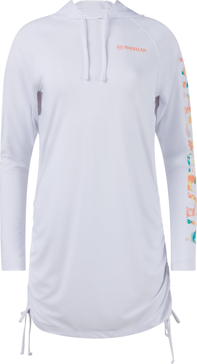 Every day is a good day for fishing when you wear the Magellan Outdoors Women's Caddo Lake Hoodie Dress. The polyester and spandex material provides a comfortable feel, while the moisture wicking technology helps keep you cool and dry. Built-in UPF protectant shields against harmful UV rays, and the hood and drawstring combo offers coverage.