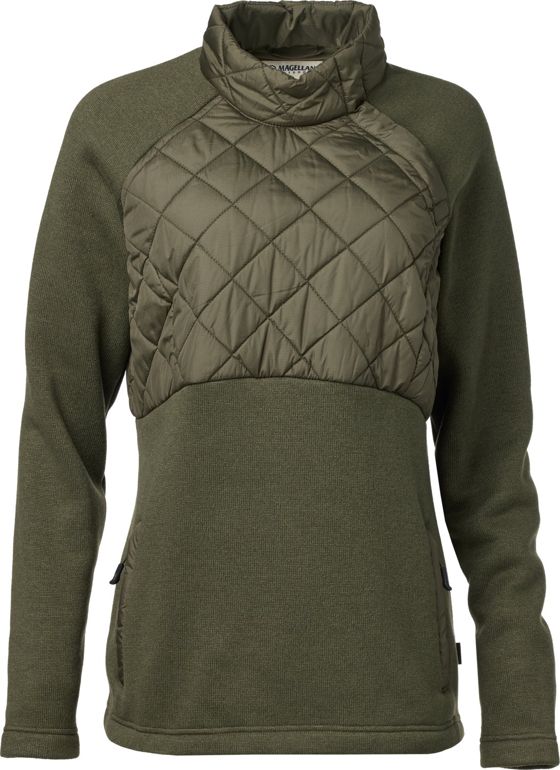 Step outside in comfort when you wear the Magellan Outdoors Women's Fayette Mixed Media Solid Pullover. The 100% polyester quilted knit fabric with insulation delivers a warm feel and lasting wear, while the lower hand pockets offer room to keep your essentials handy.