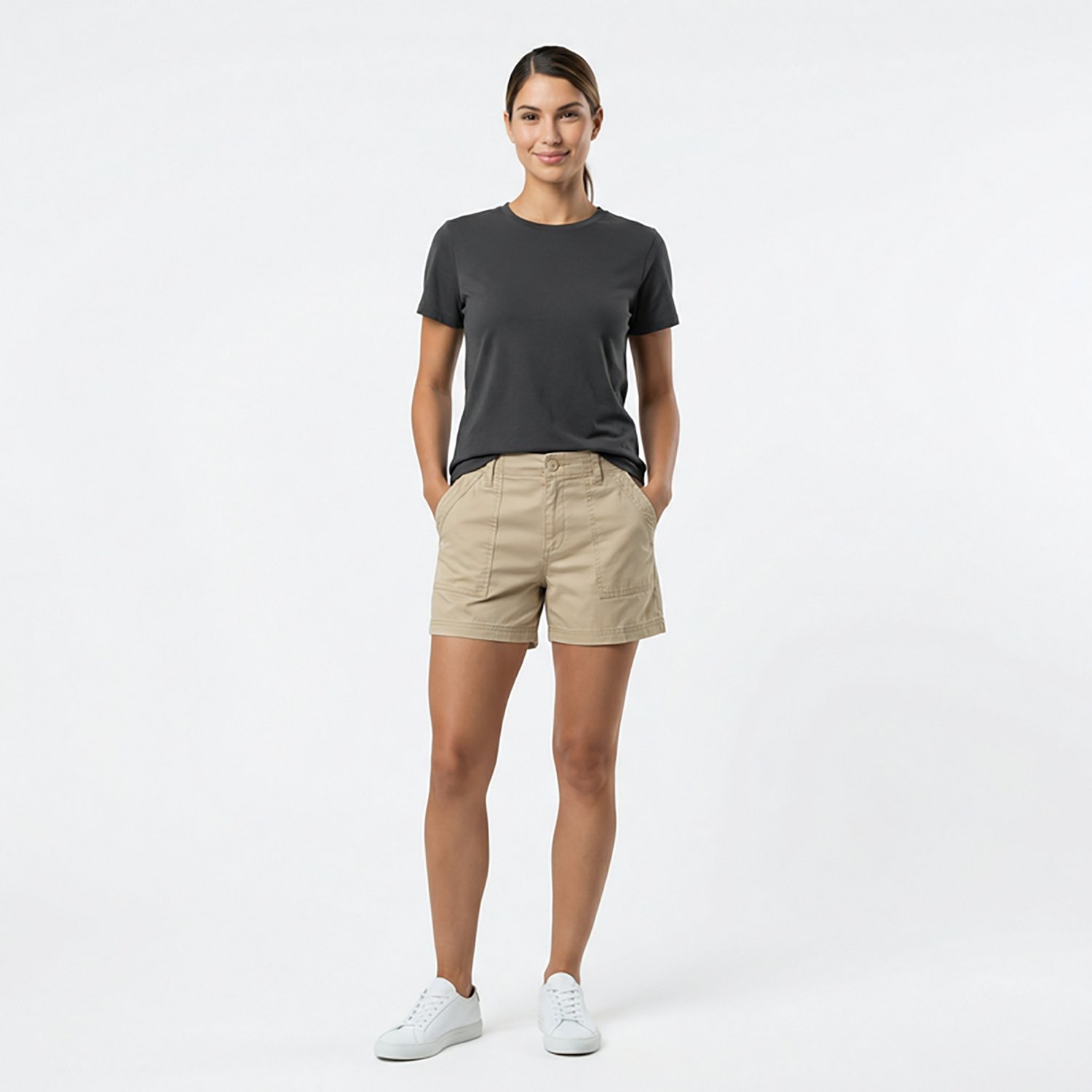 Features and Benefits Classic Fit 97% cotton and 3% spandex material Open hand pockets Button and front fly closure offers a secure fit Specifications Compression: No Clothing Type: Outdoor Shorts,Hiking Shorts,Casual Shorts Everyday Value: Yes Ventilated: No Shorts Length: Short Inseam (in.): 4 Activity: Outdoor Living,Casual Material: Cotton blend Gender: Women's Size Range: Women's Moisture Wicking: No Water Resistant: No Product Type: Shorts Flame Resistant: No Age Group: Adults' Style: Athletic Shorts Lining: No What's in the Box Magellan Outdoors Women's Hickory Canyon Hybrid Shorty Shorts