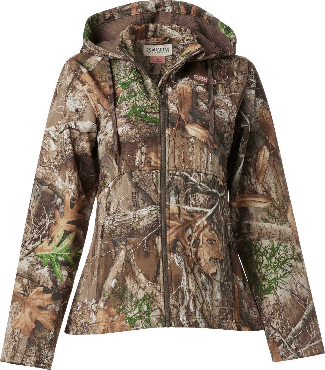 Beat the cold out on the hunt wearing the Magellan Outdoors Hunt Gear Women’s Boone Hooded FZ Jacket. The polyester fabric keeps you cozy and comfortable, and the hood helps keep the elements at bay. The camo design helps you not be as visible to wildlife.
